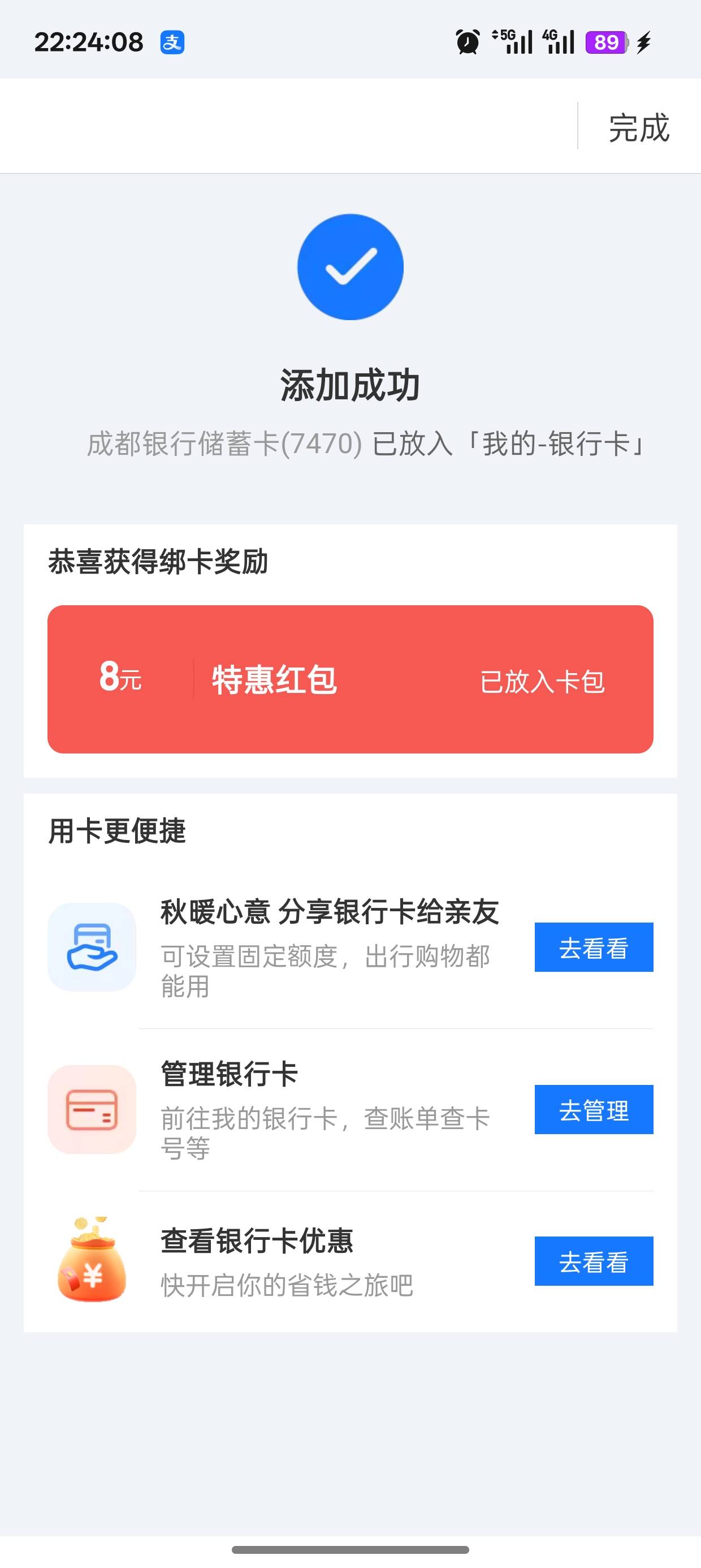 成都银行绑卡支付宝8元特惠红包活动