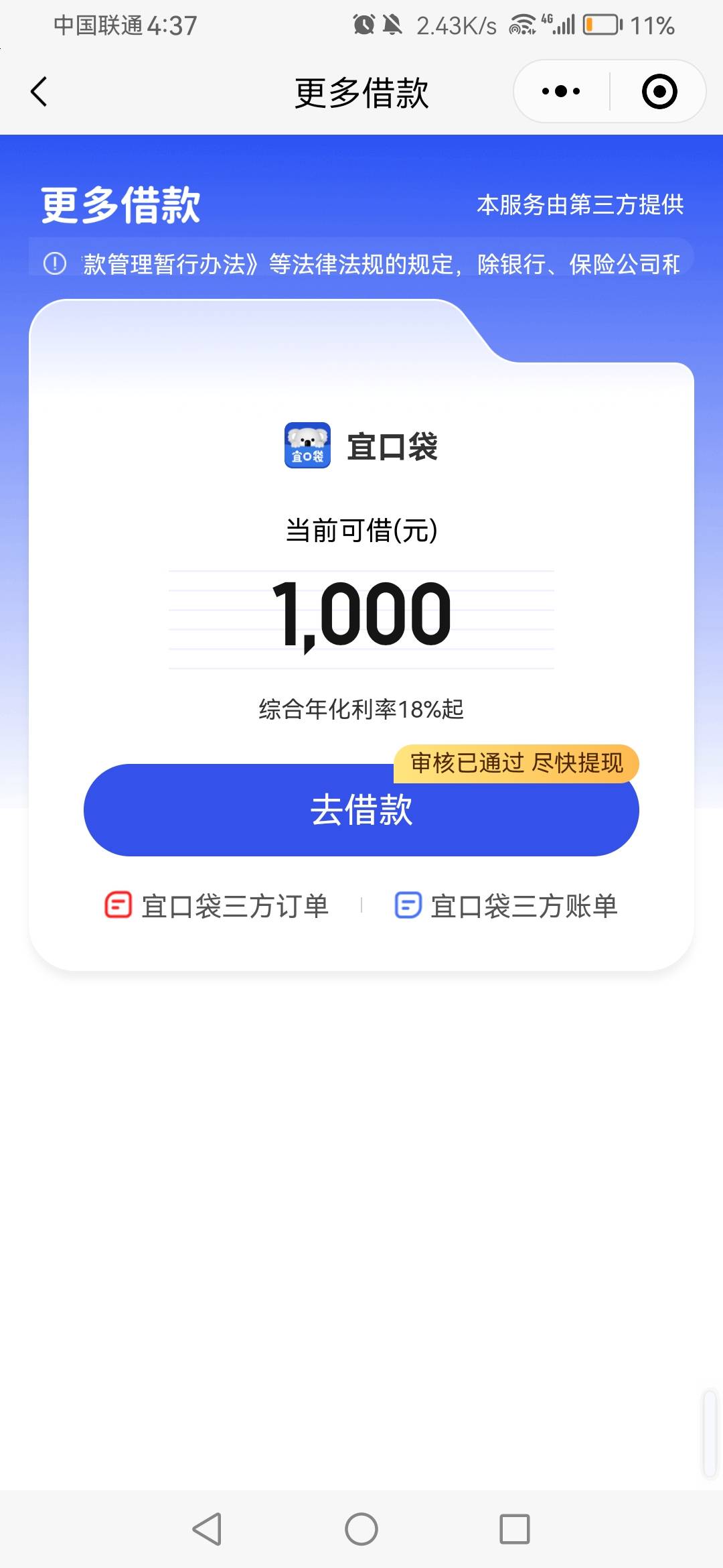 兄弟们微信 宜口袋 ,我信用卡五张欠费 还有美团5k 安逸花90马上结清, 居然下了一千
