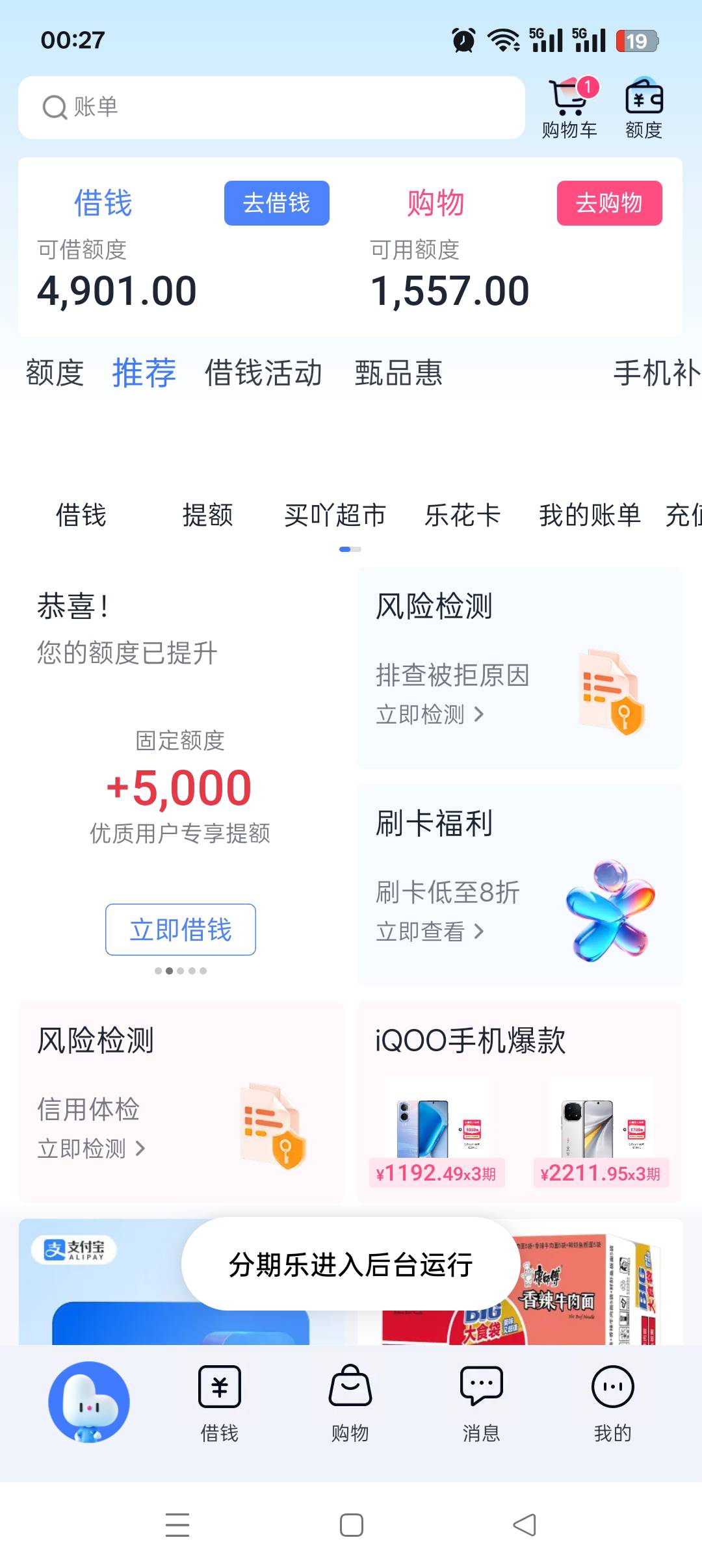 不容易,弹尽粮绝,分期乐下款100。有烟抽了