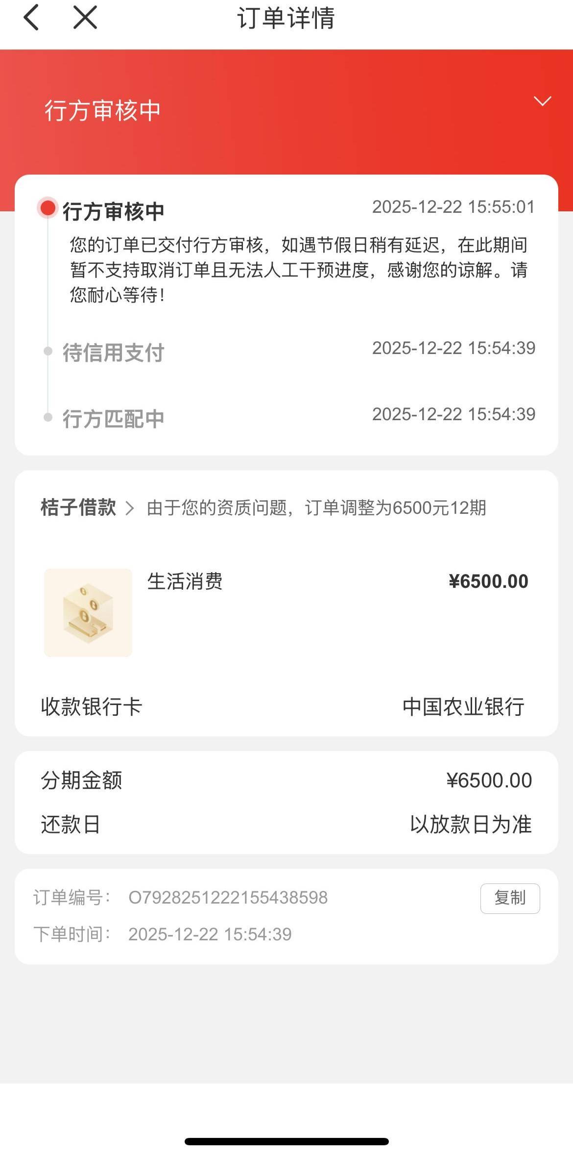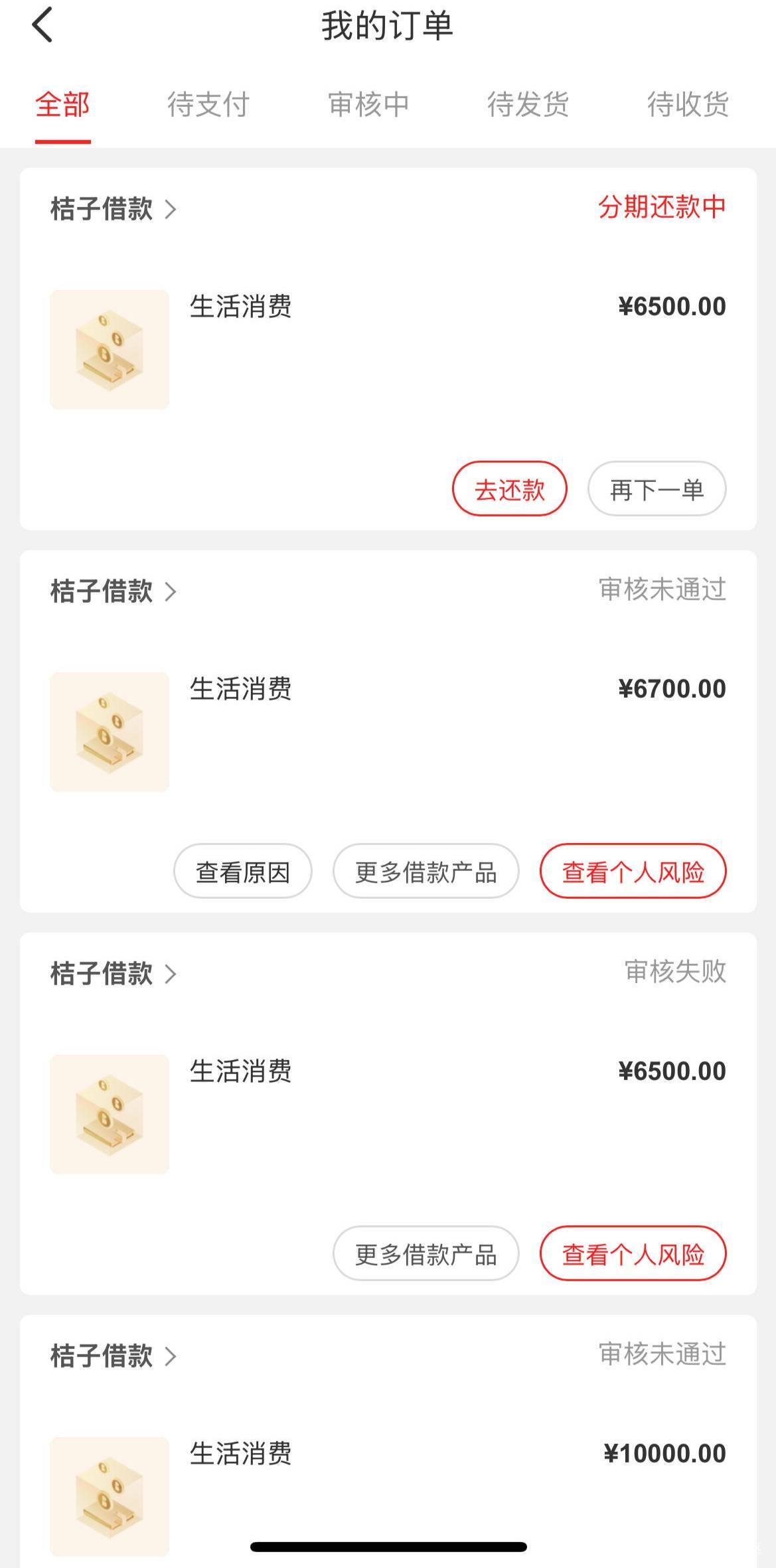桔多多重新注册有10000的额度,申请失败,又给了6500的额度拒了又重新申请的。河南中原消费金融下的款。