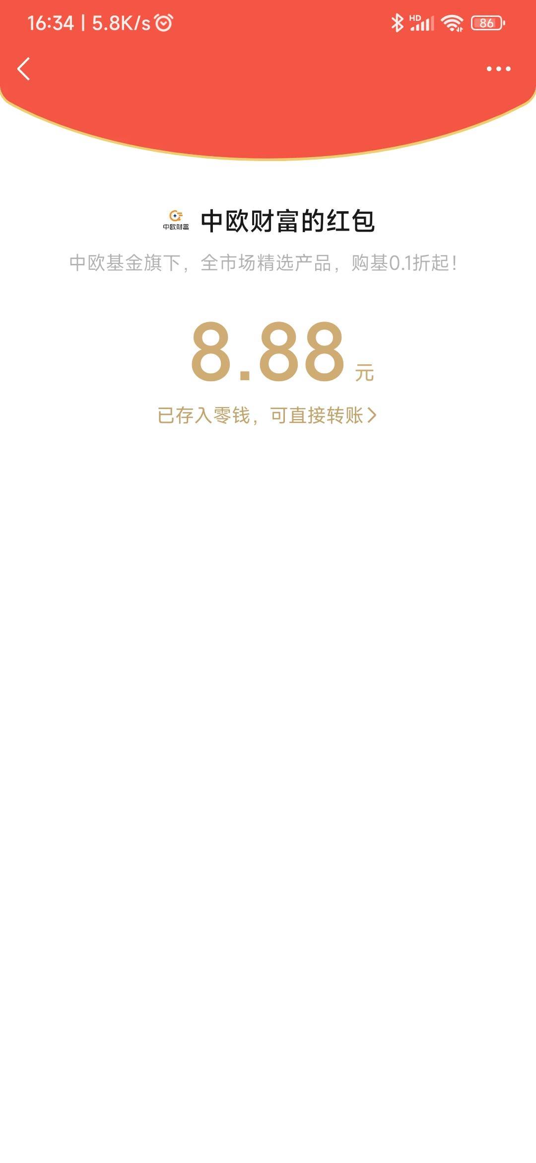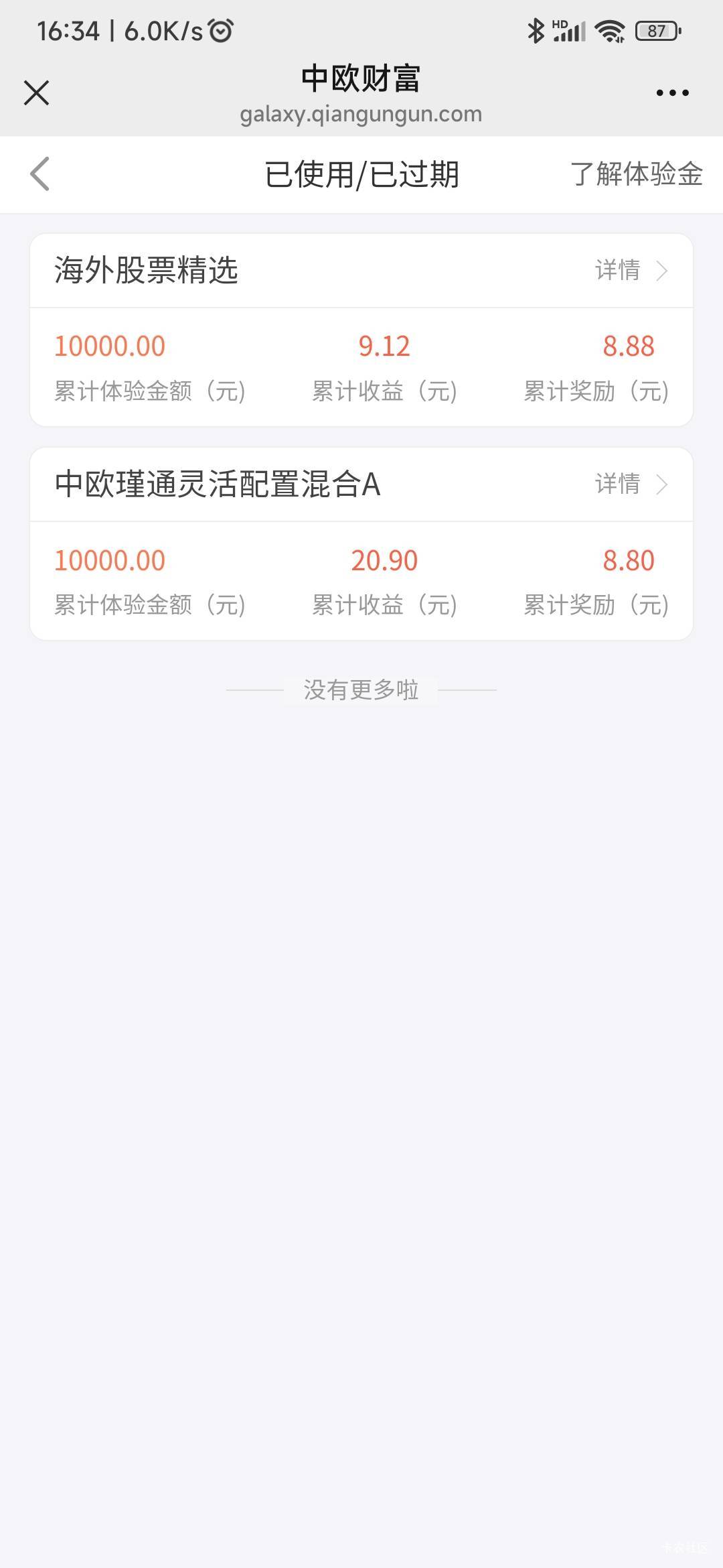wx服务号中欧财富,之前领的体验金奖励发了两个8.8