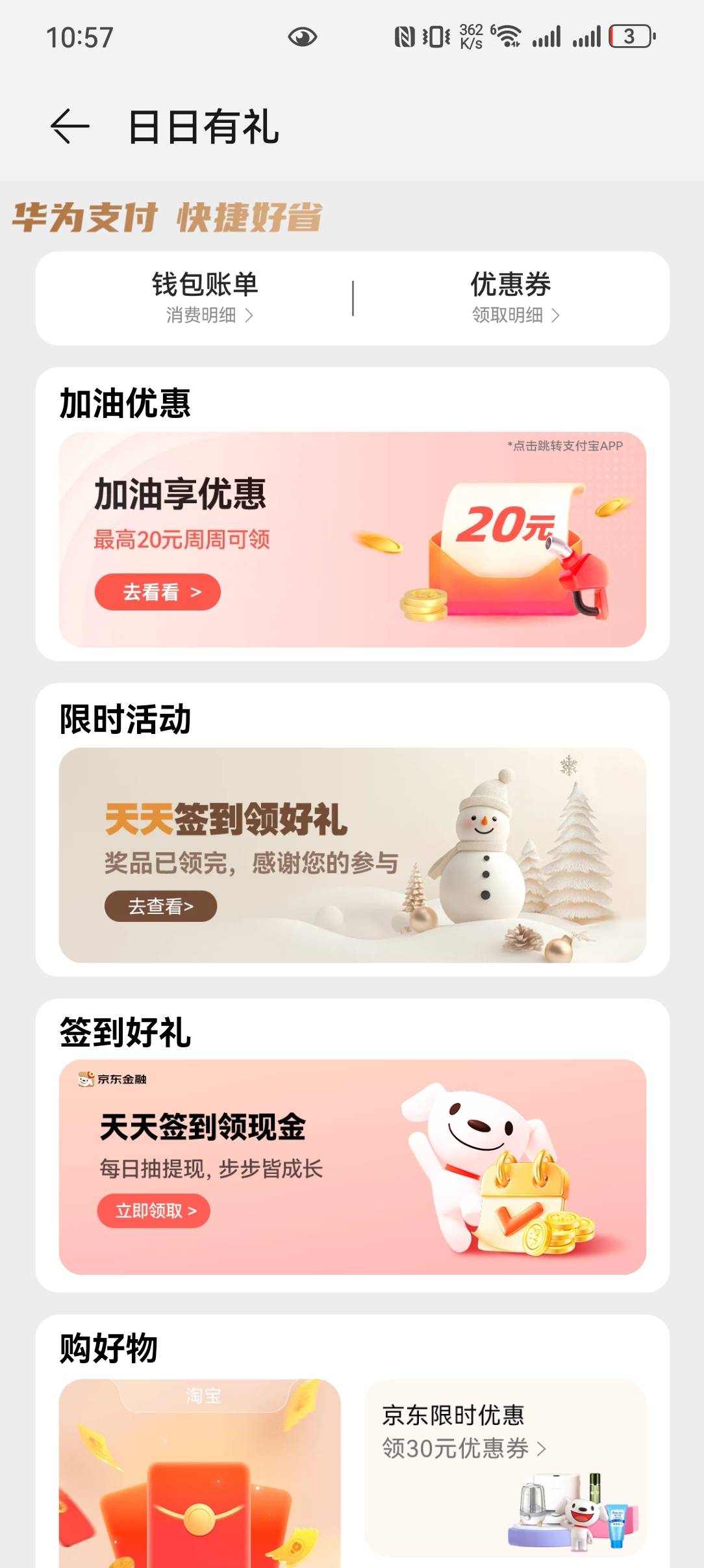 华为新活动,负一屏完成任务领好礼,三个任务,16毛