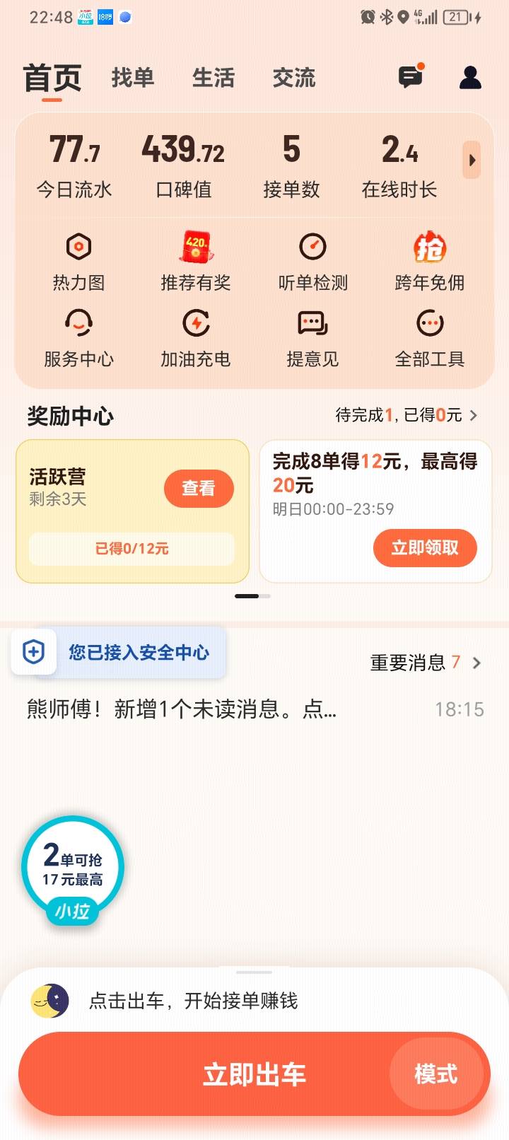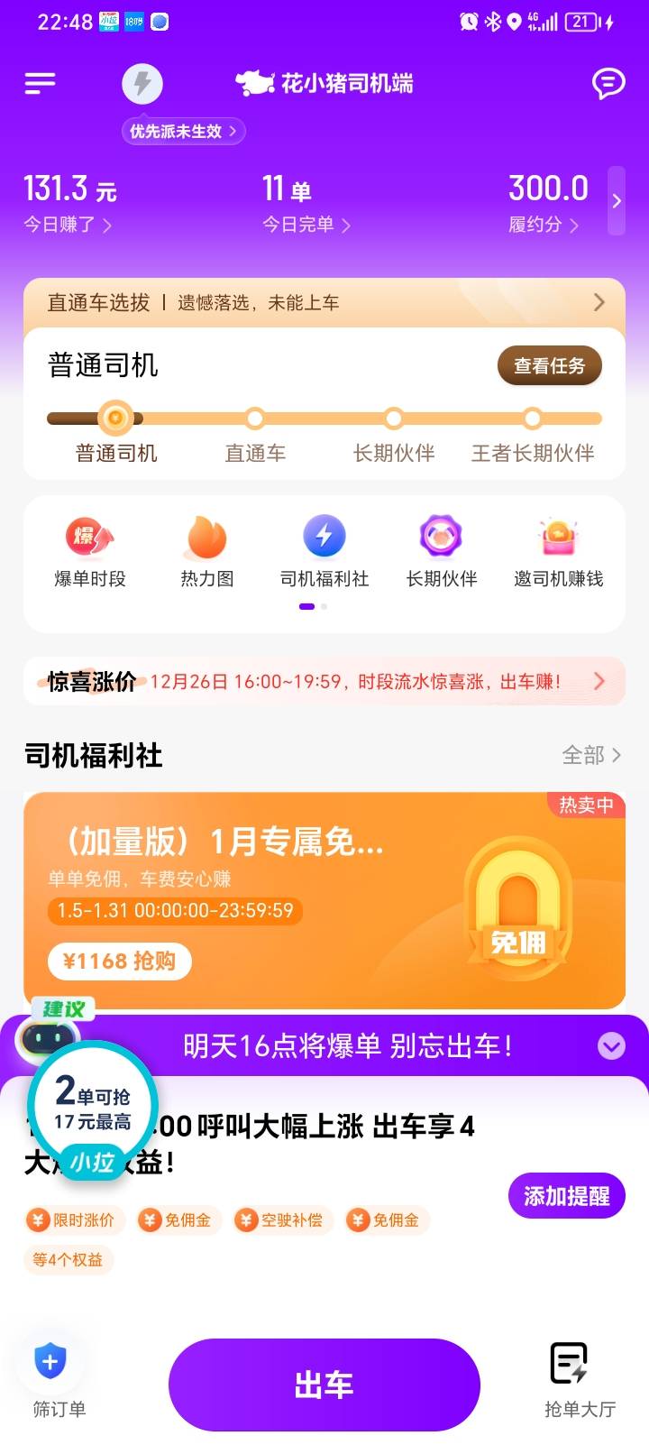 老哥们,今天跑车跑了300,收工了