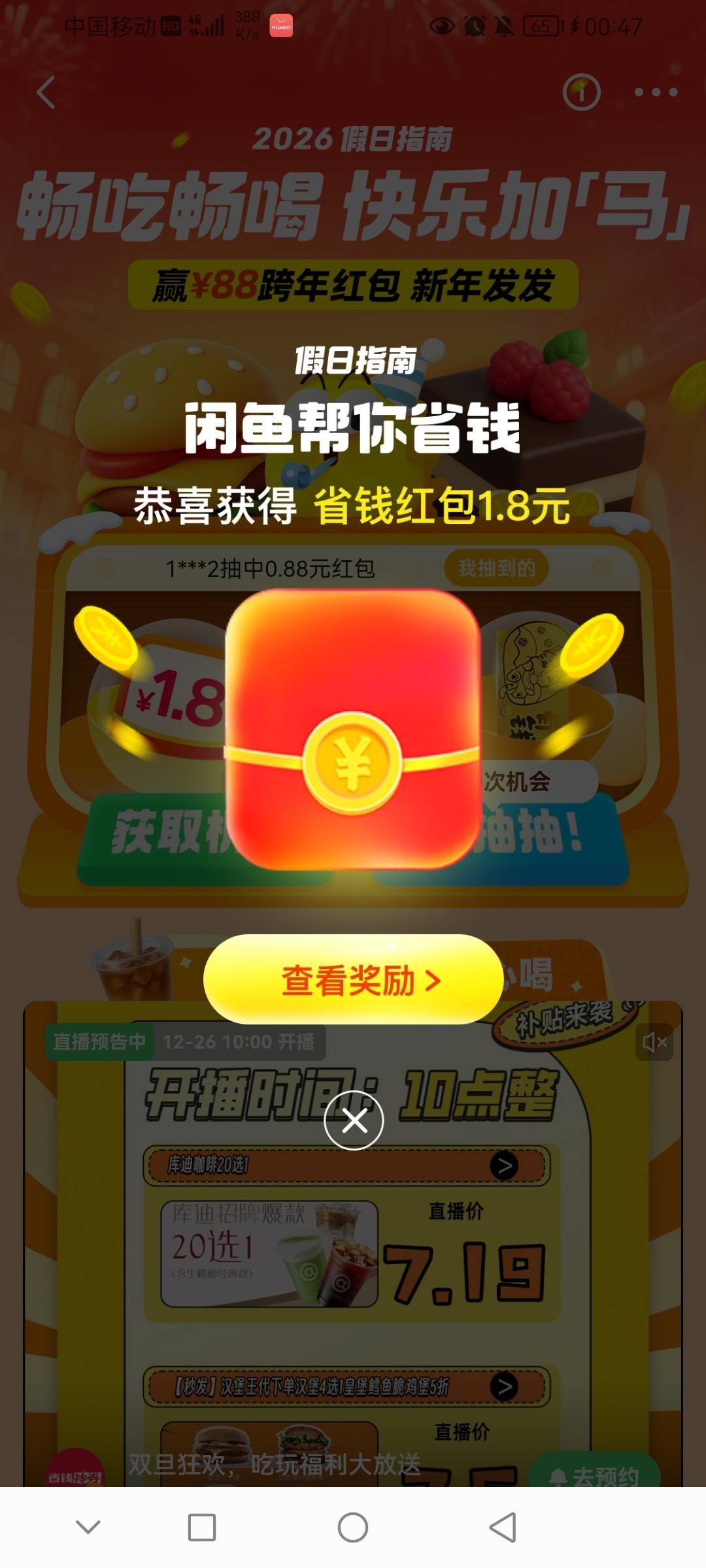 闲鱼假日省钱活动,小红包基本没润