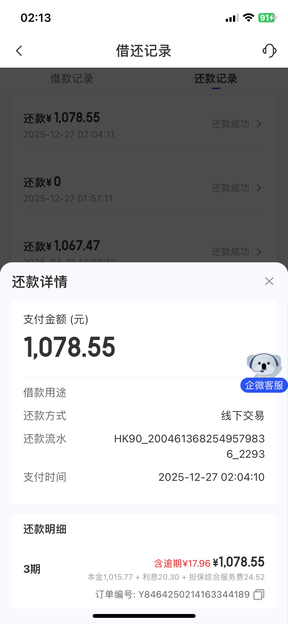宜口袋还欠最后一期 一直没还,这是被代偿了吗? 它自动还款了