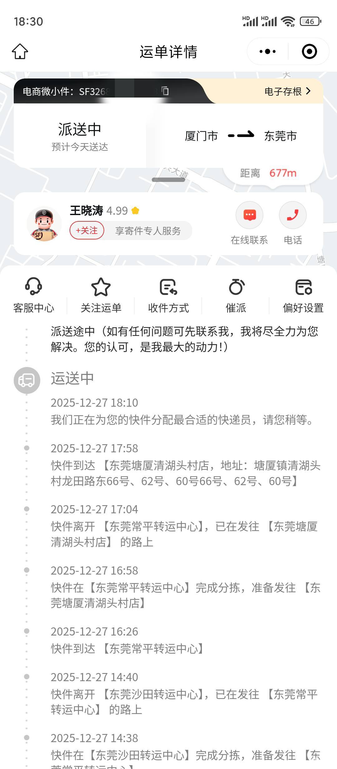 请前后移动手机 发表于 2025-12-27 18:43 没我近,我楼下50米就是顺丰站点,我刚刚自己下去拿的