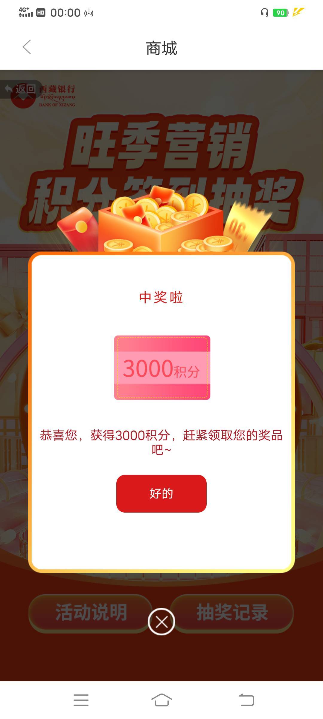 西藏银行旺季营销积分签到抽奖活动