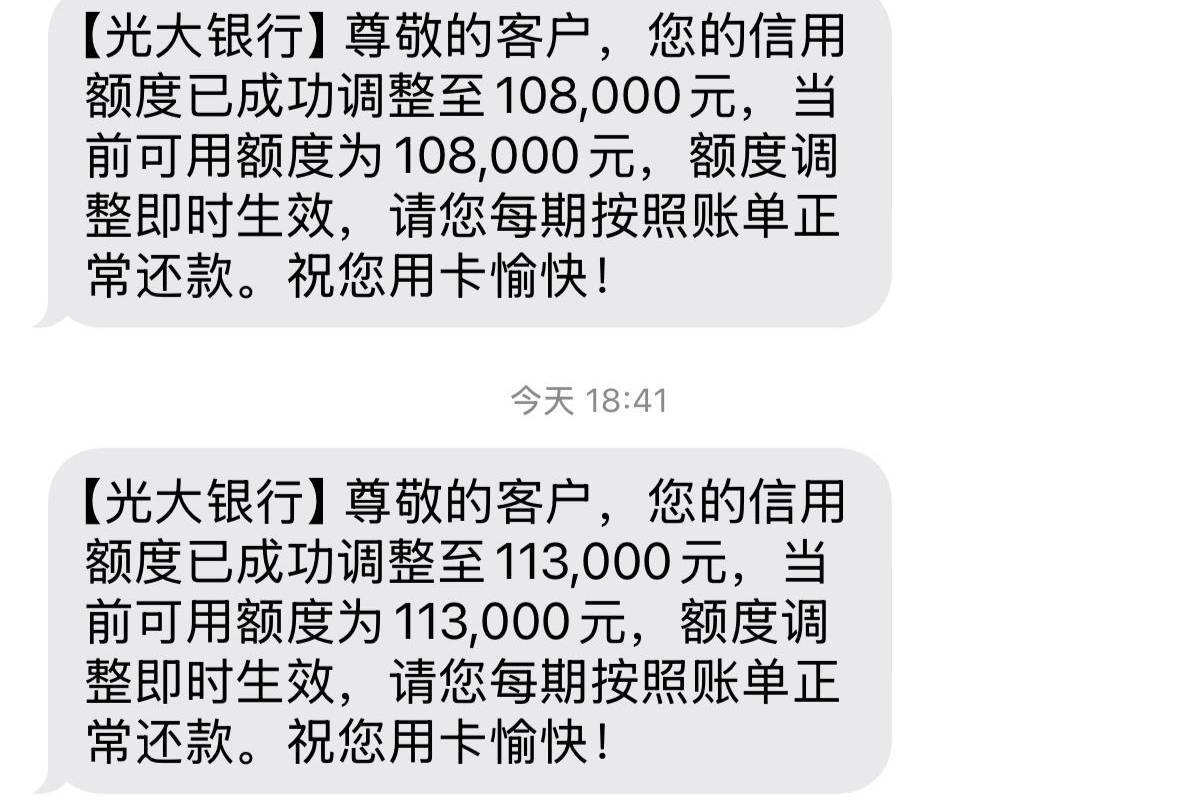 光大银行提升额度了,年底大通过?招商出黑屋提了,光大也提升额度度了。