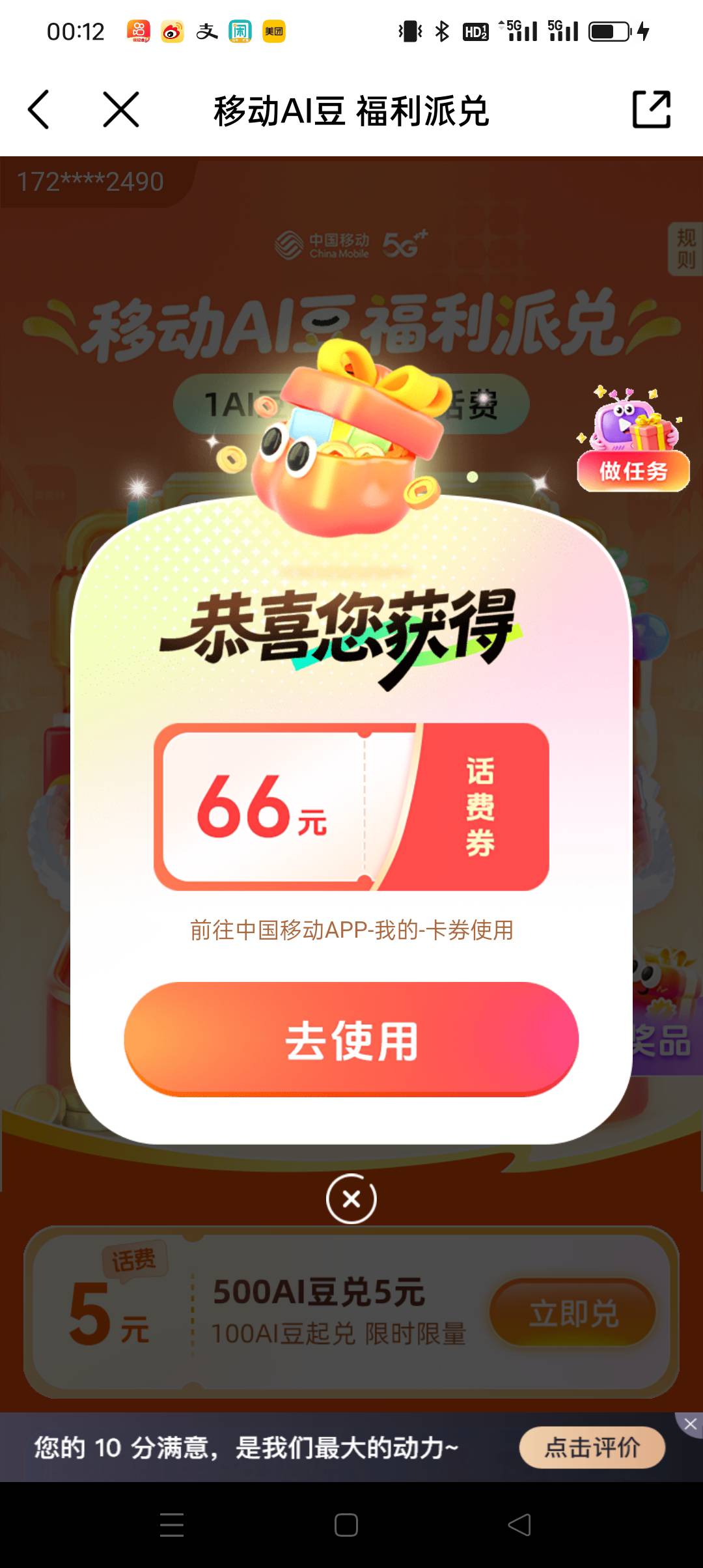 发财,移动APP搜ai豆抽话费