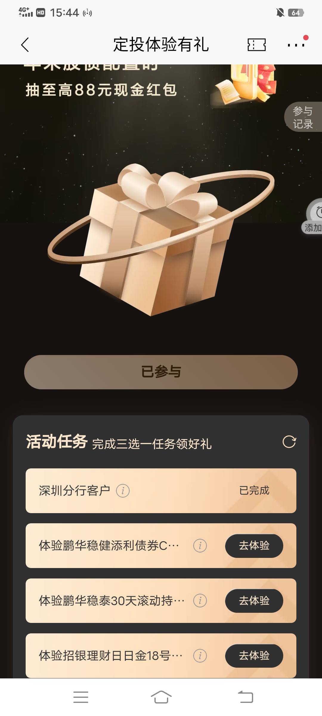 招商银行深圳定投体验有礼抽现金红包活动