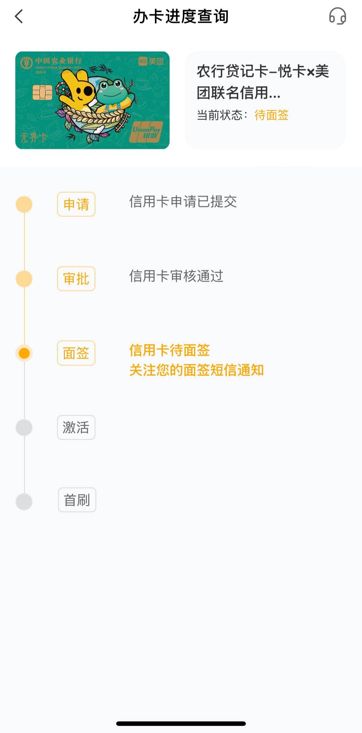 农行美团下卡了 这月3号申请秒拒 月底给下卡了 app申请的 我每次申请都不一样 这次换