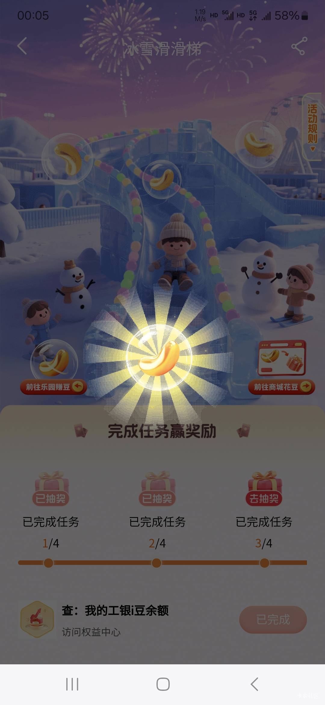 工行工银i豆乐园冰雪滑滑梯抽奖活动