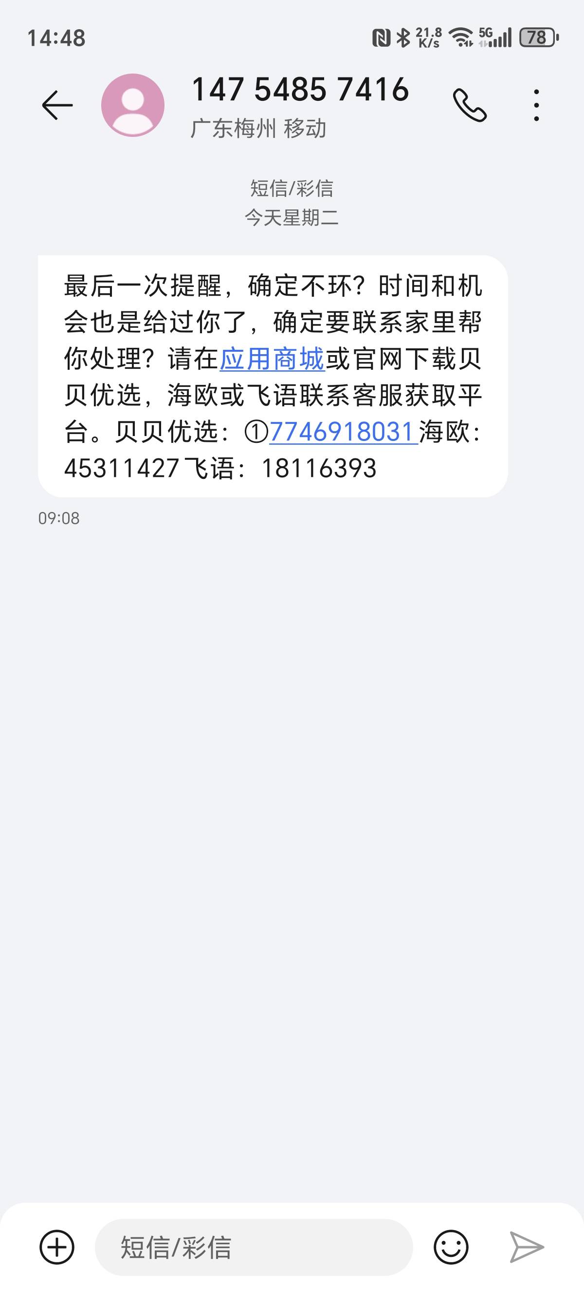 我收到一个让我加呗呗的,开头带名字的,问题是我这种没下过