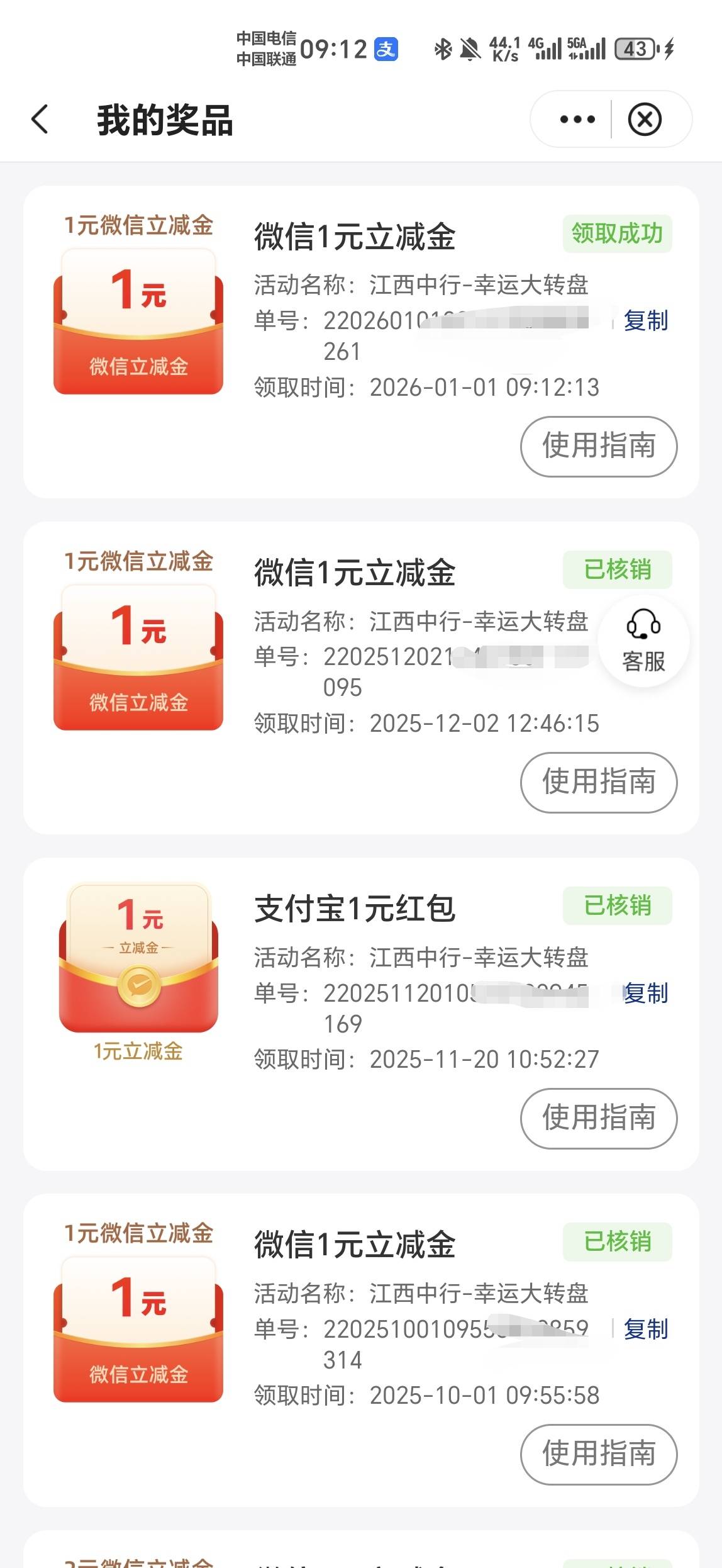 中国银行】最高188元立减金!登手机银行-生活-本地专属-幸运大转盘,好像限制江西本地,稳定1毛