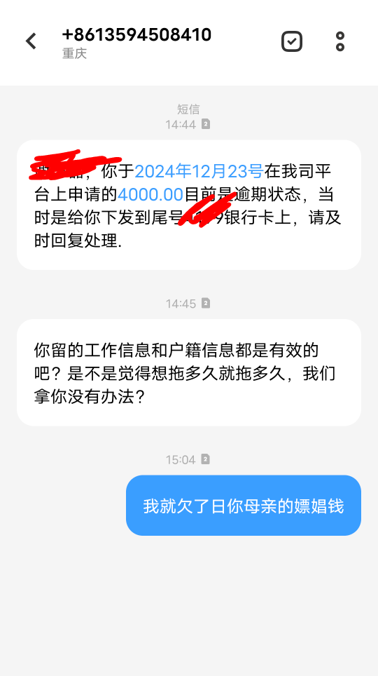 雷霆, 发表于 2026-01-02 15:25 我天天有这个信息,都是重庆那边的,好像是桔多多还是宜口袋的催收