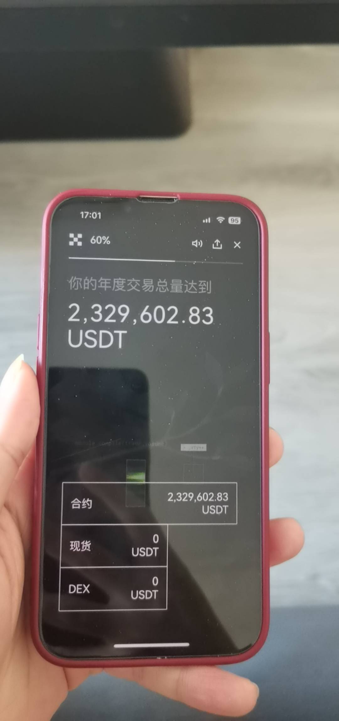 20天200万刀,平均每天合约交易额10万,合约是买和卖都算进交易额,算你每天只交易一次合约,每天平均额实际金额只能算五万,给你按低风险10倍杠杆算,每天平均本金是5000刀,折算出你每日交易平均本金大约人民币3.5个,如果是20倍杠杆就是每天交易本金人民币1.75万,50倍杠杆就是人民币7000,100倍杠杆就是人民币3500,老哥是哪一档?