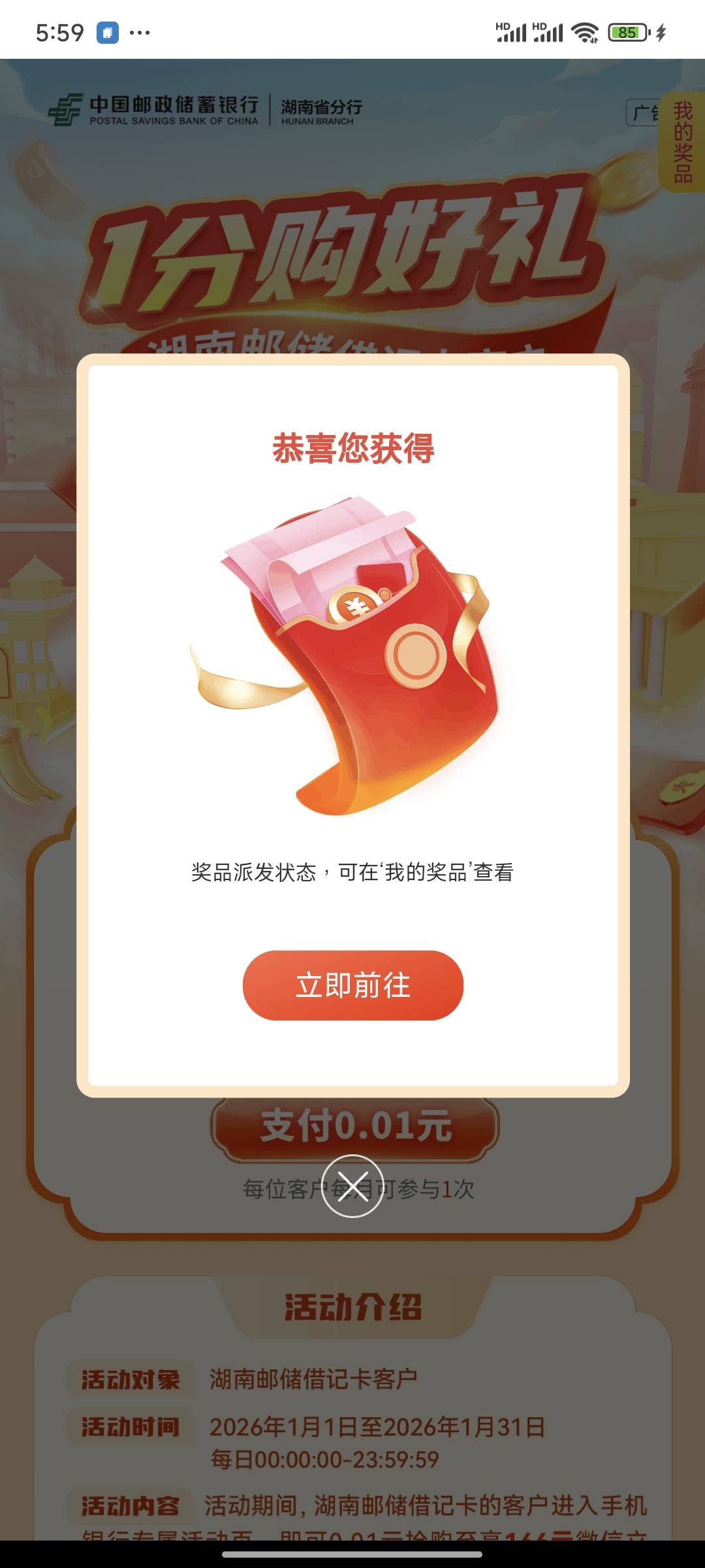 邮储湖南1分购好礼,1.28