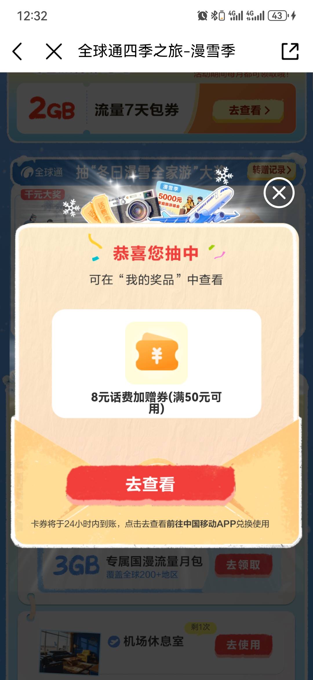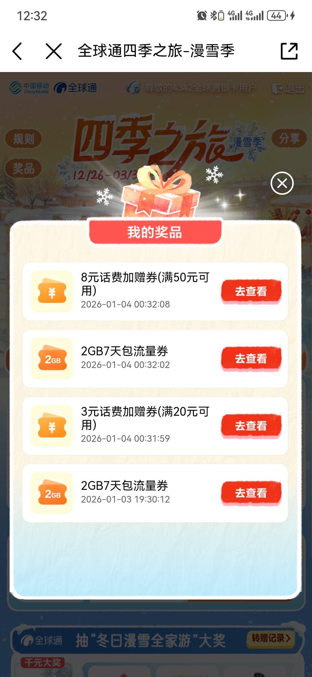 全球通,四季之旅,话费券+流量券