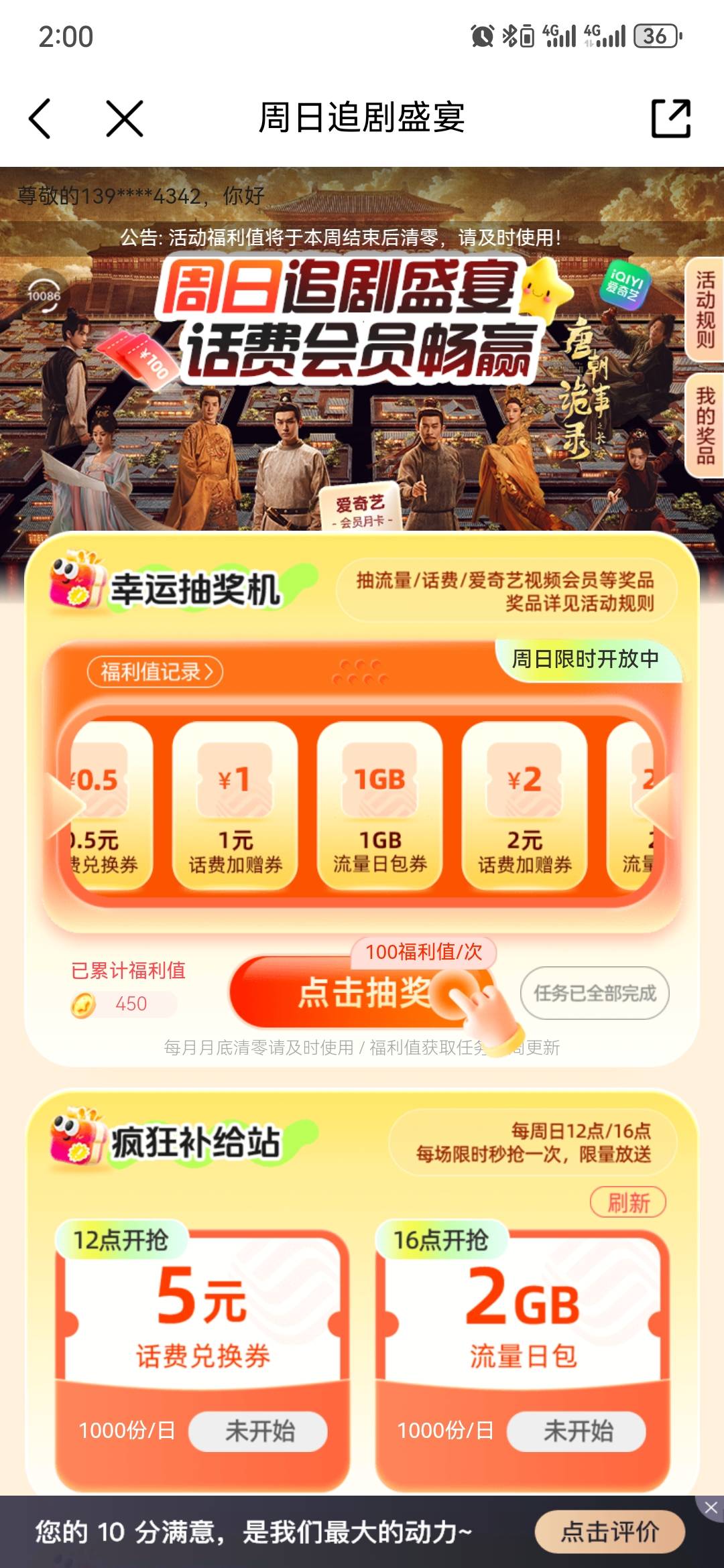 移动,周日追剧,抽话费券