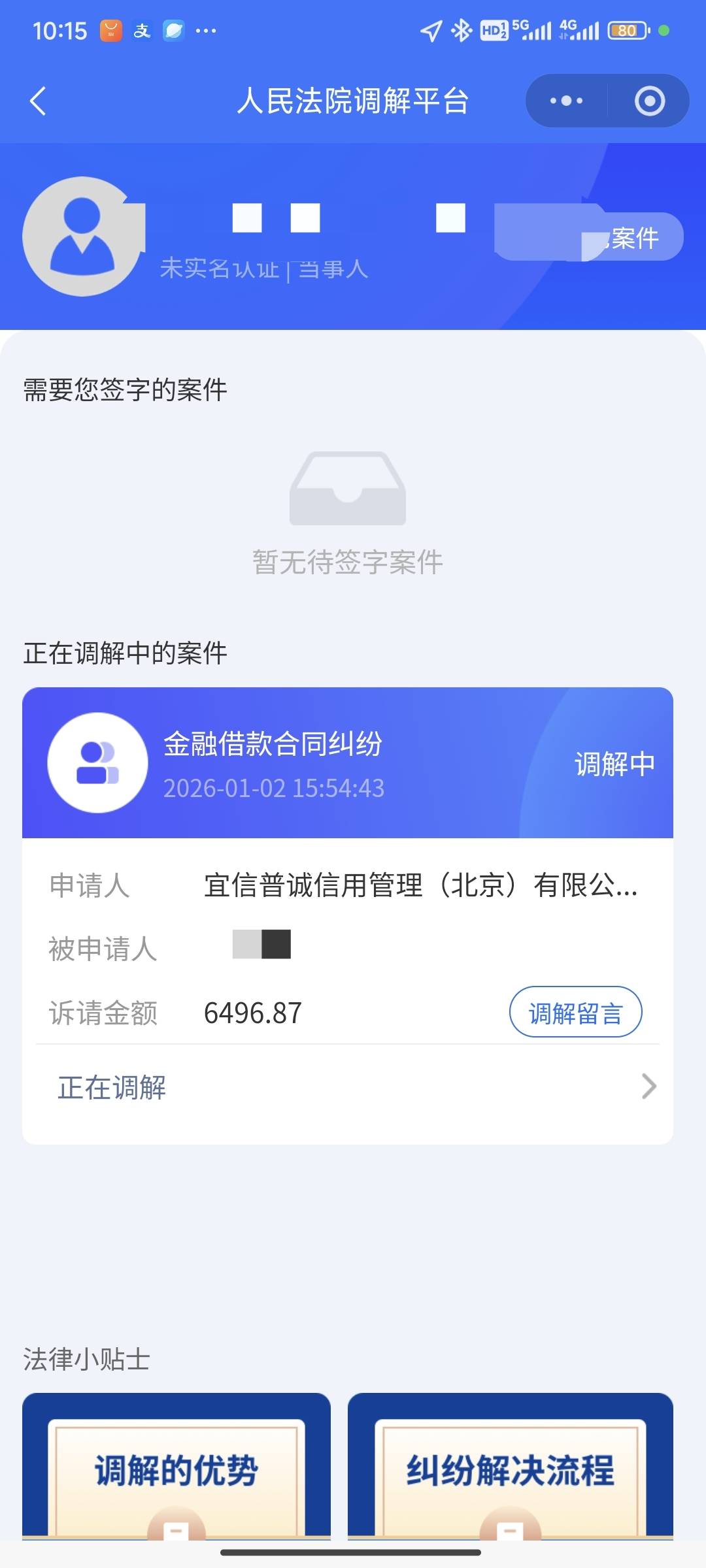 老哥们 宜享花上多元调解了,严重吗?是不是就要冻微信啥的了?
