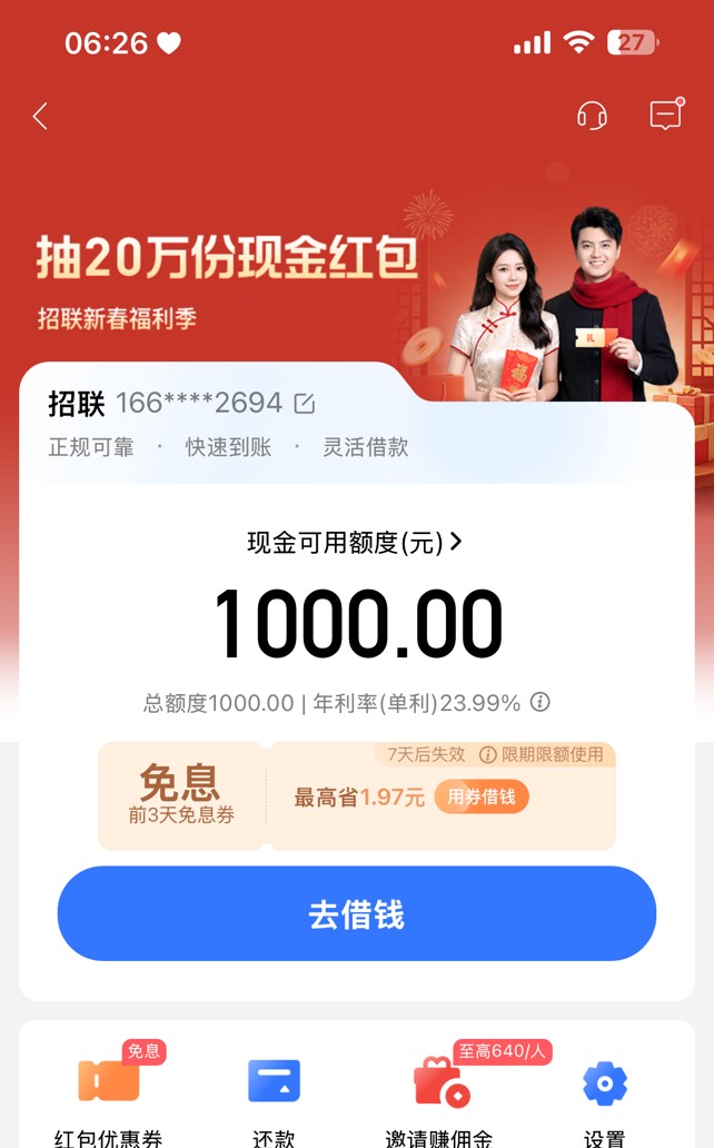 狗屎分673 发表于 2026-01-04 11:43 这个招联给了我100额度,要认证公积金跟税收才恢复那1000额度,没戏了