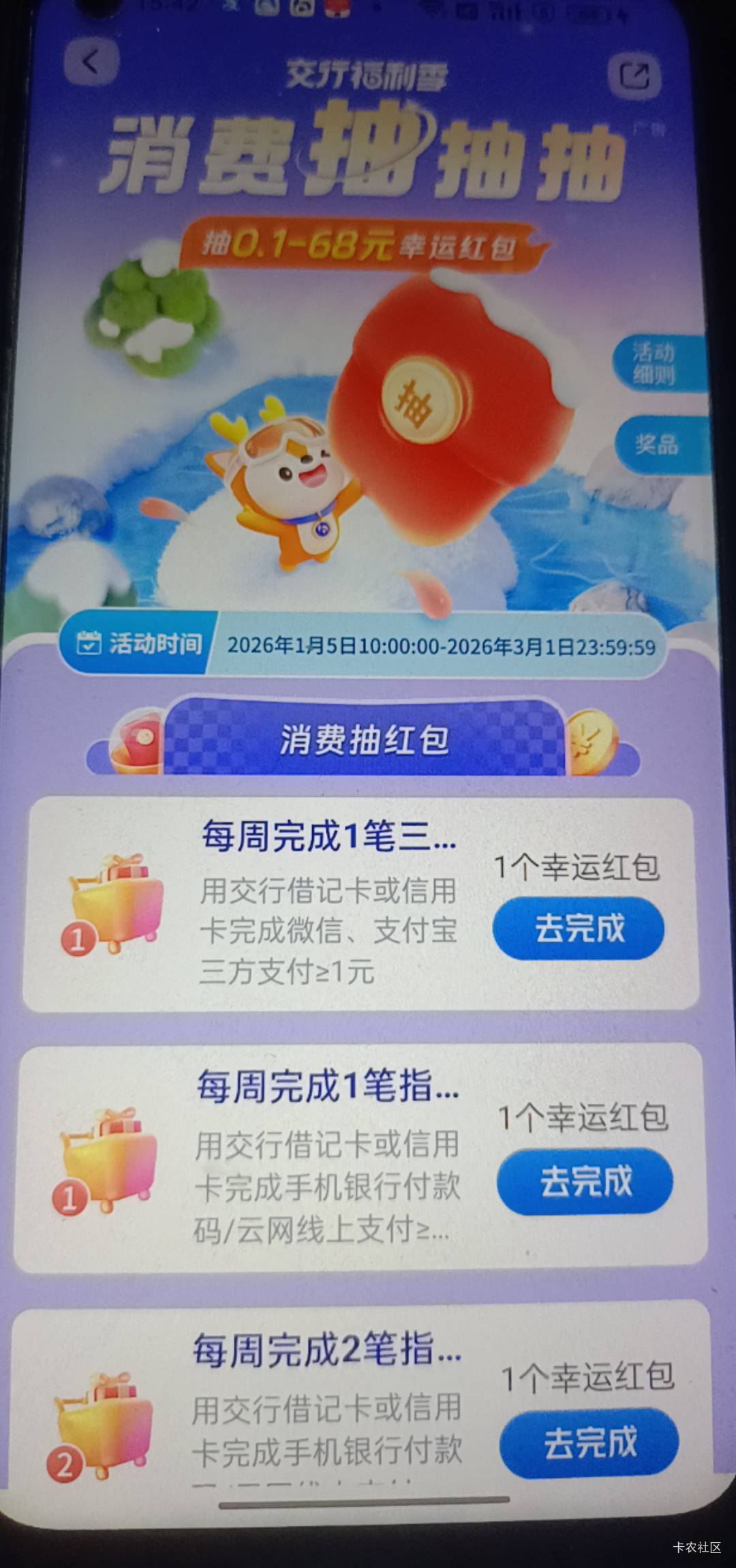 交行消费抽抽抽,去年都是秒更新,今年按照去年达标付款,一直不更新,各位老铁,你们