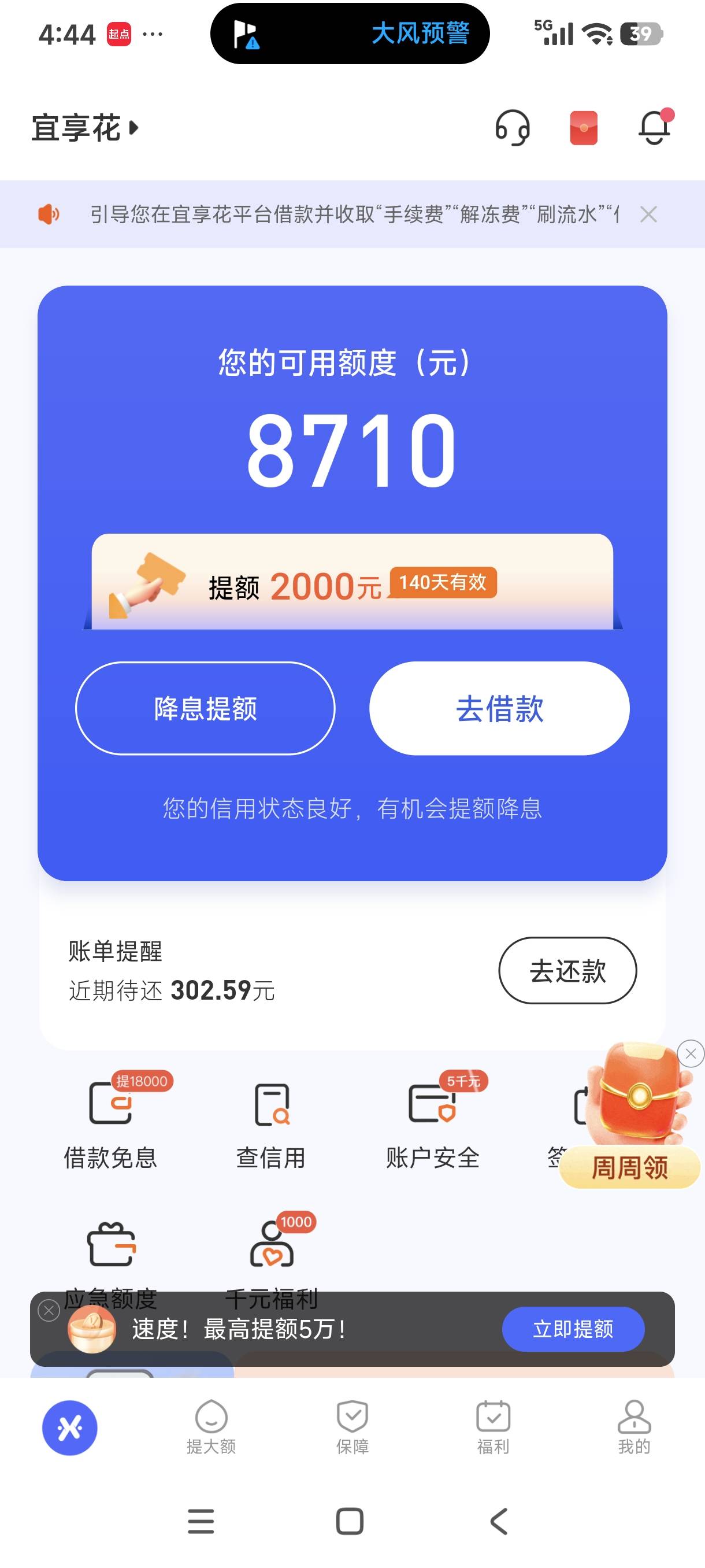 宜享花T路几个月了,这个月给了提升额度,老哥们有希望嘛