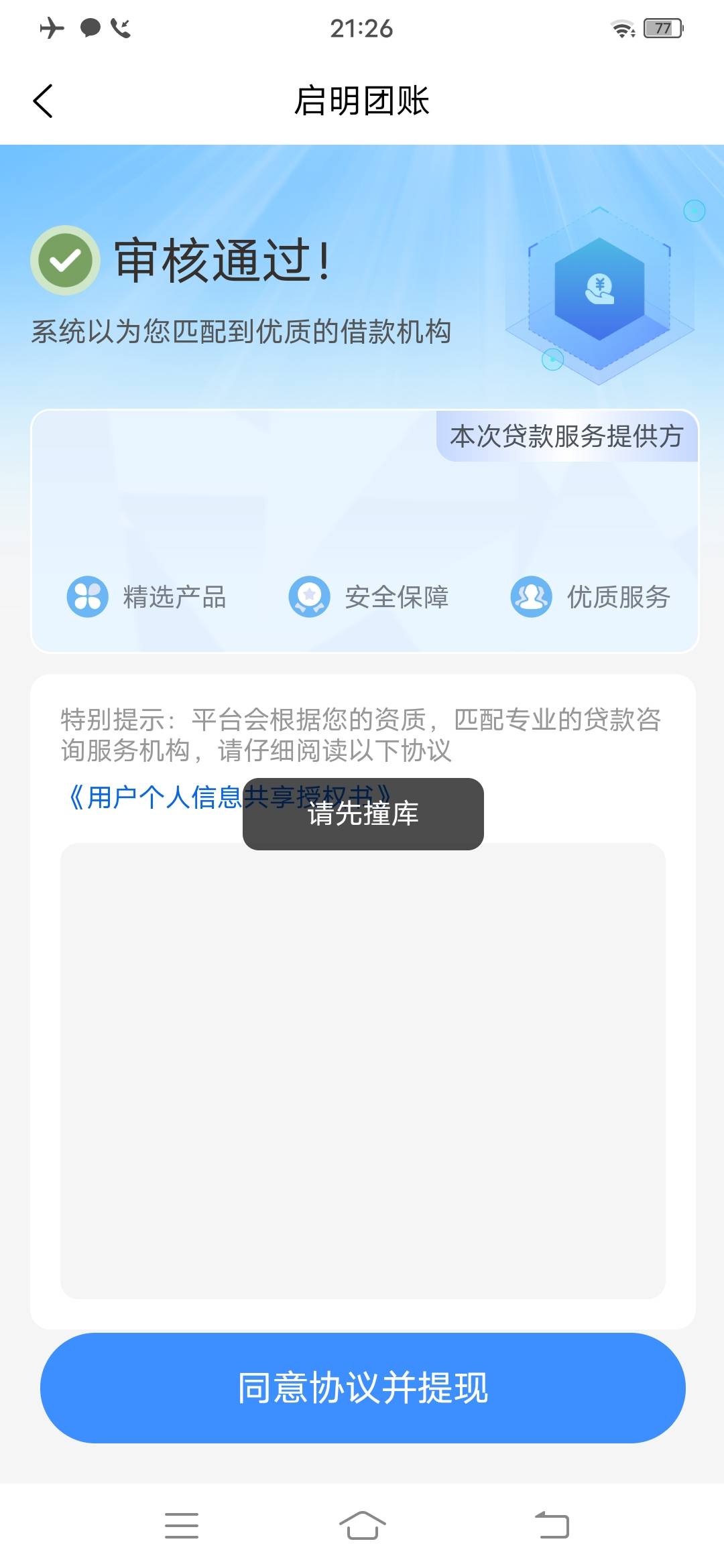 万年不 发表于 2026-01-05 22:34 意思就是审核通过了,但是金库门没打卡,让你撞门