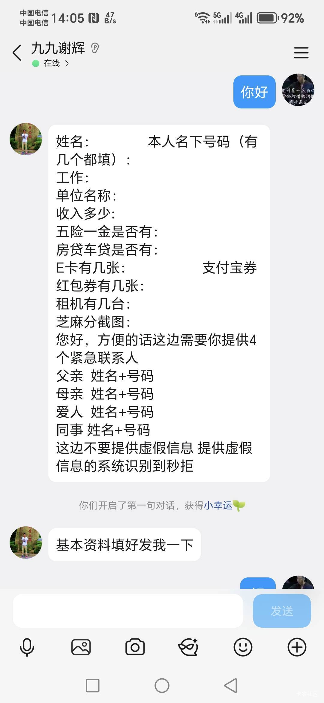后来的我们1 发表于 2026-01-06 14:17 没有前期,接的回访电话,让加微信,做个会议,我说不会做,让后加的 qq 让填一下资料,可我分数太低了,也不会 p
