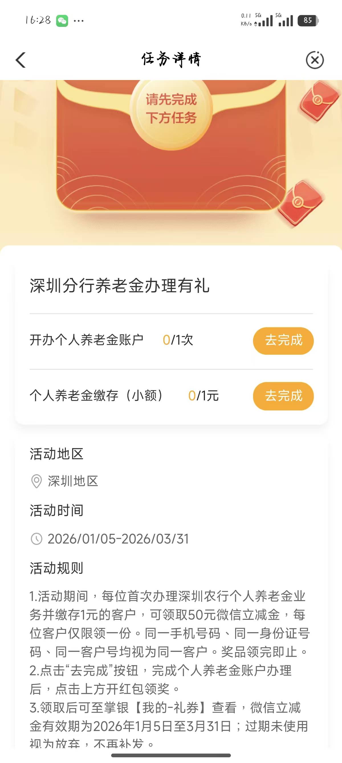 农行深圳分行养老金办理有礼活动