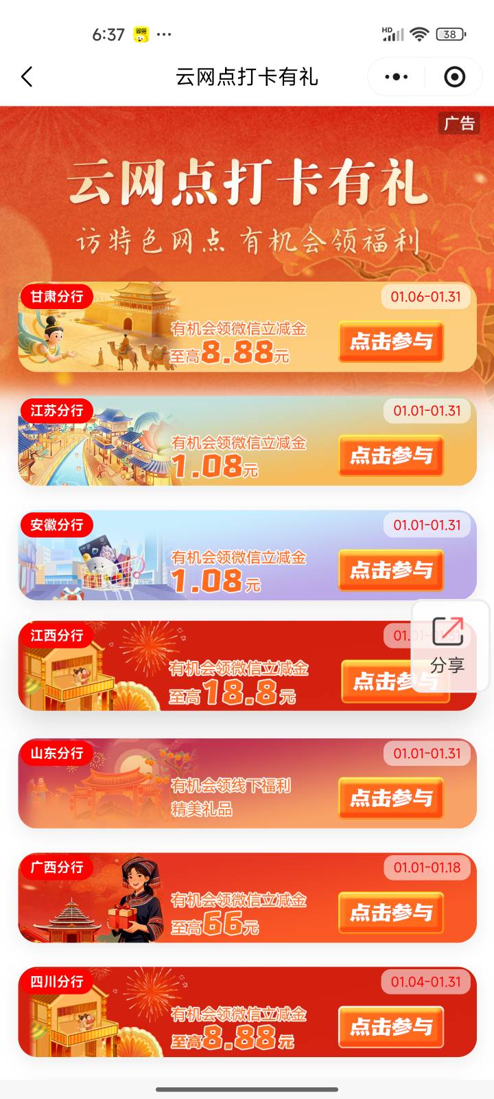 大妈小程序打卡立减金活动#小程序://工行服务/SOH7qq4Q7GF3ihH