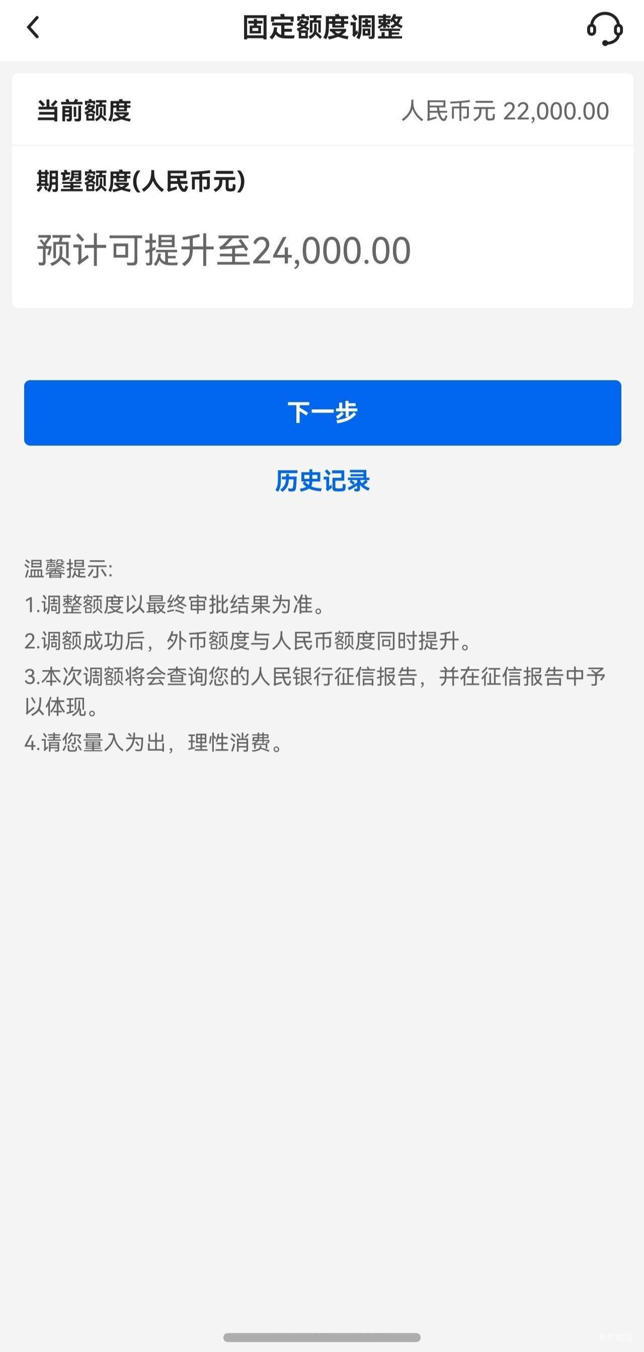 中国银行信用卡提升额度了,22000-24000。
