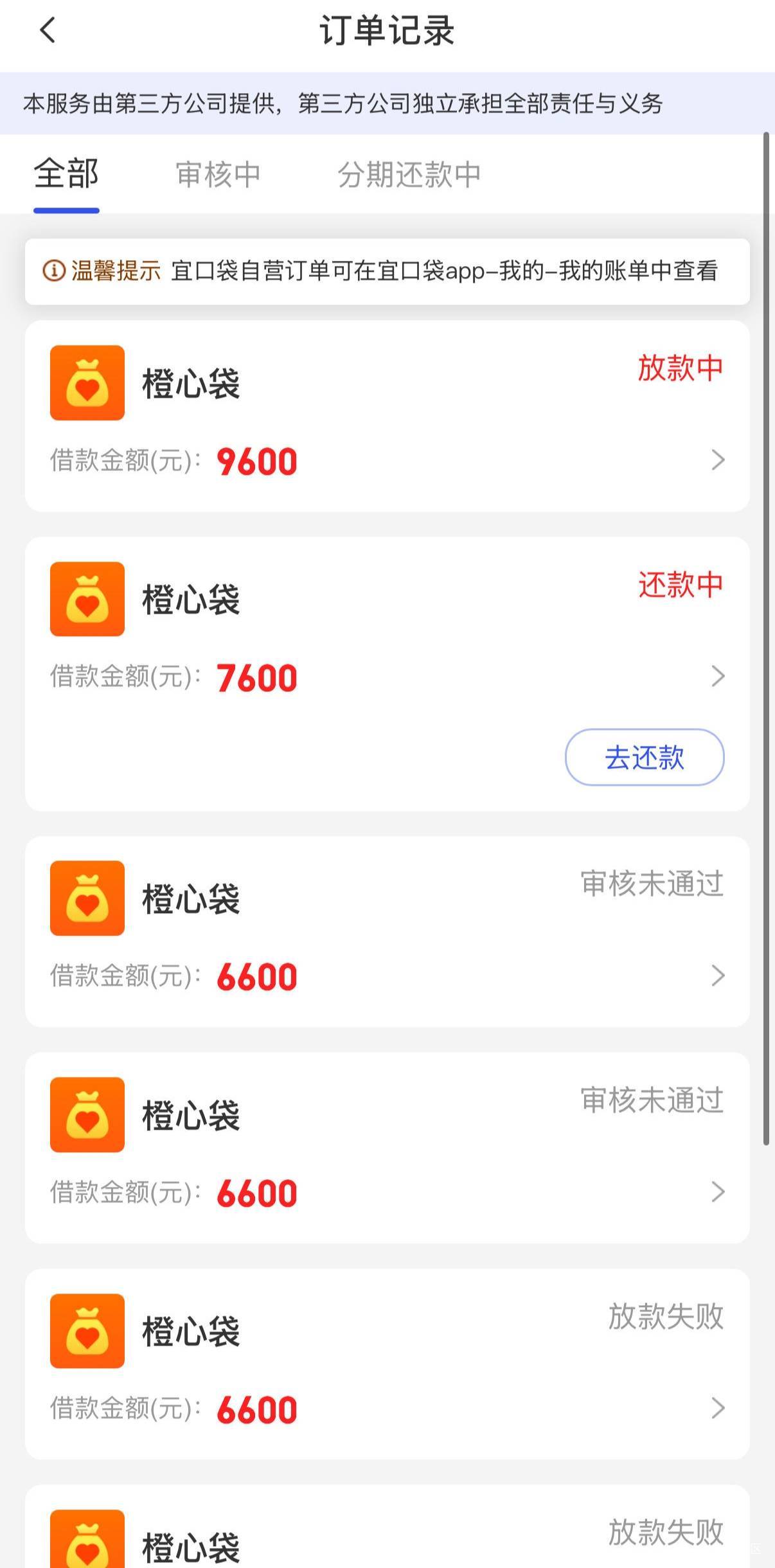 橙心袋今天出了第三笔额度,第一比建行卡3100被秒扣,第二比招行卡7600设置了就扣了200,今天第三比出了9600继续招商卡,中午到现在放款中,卡设置的300,不知道现在招商卡有没有问题。