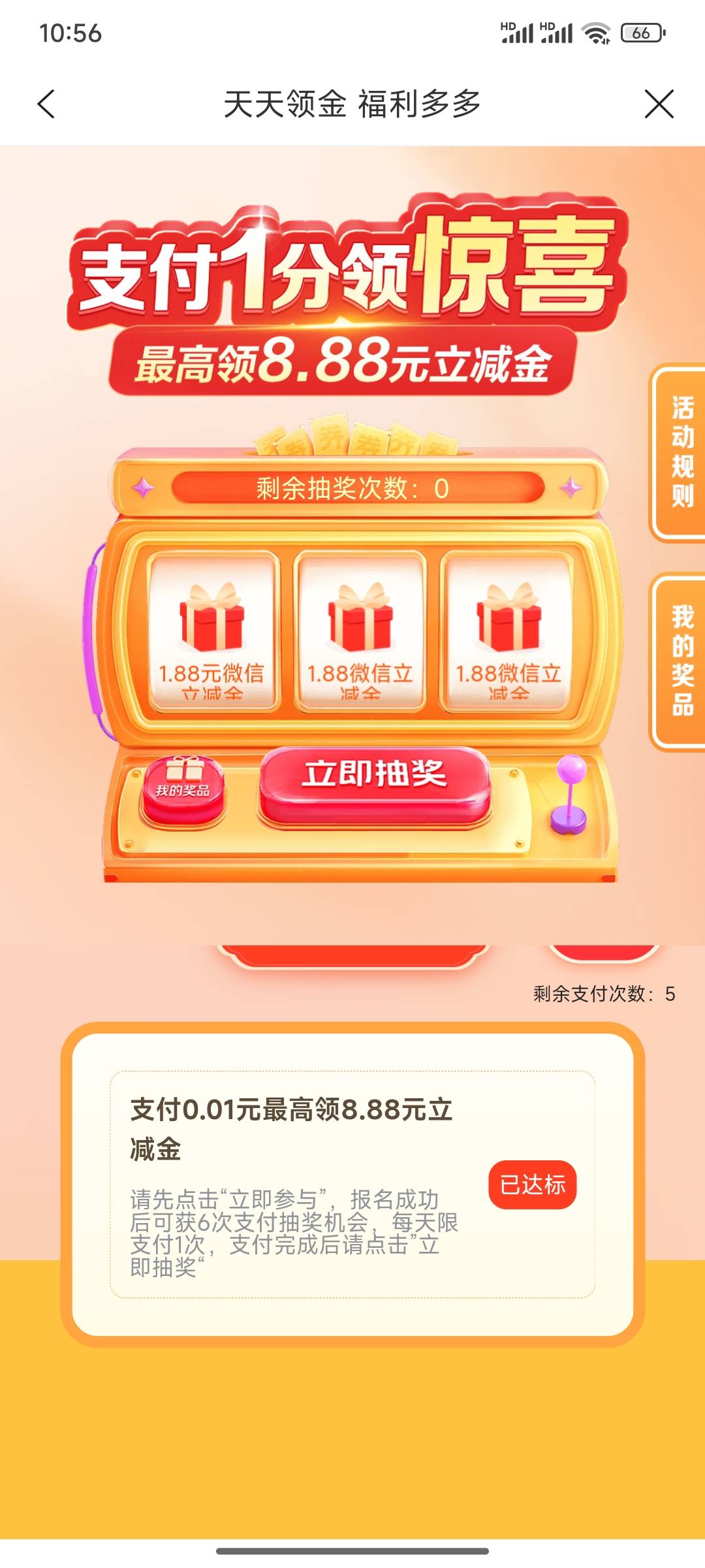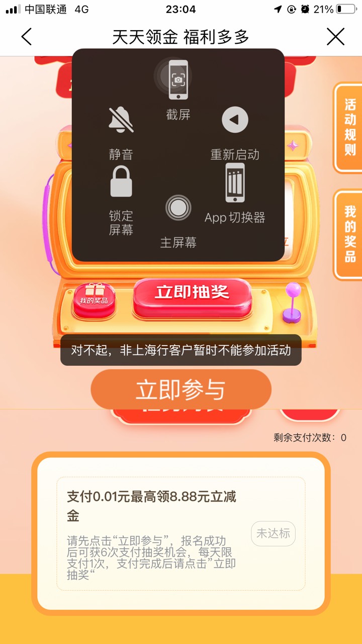 上海建行生活 本地里面有个最高领8.88的活动,连续6天支付一分领1.88