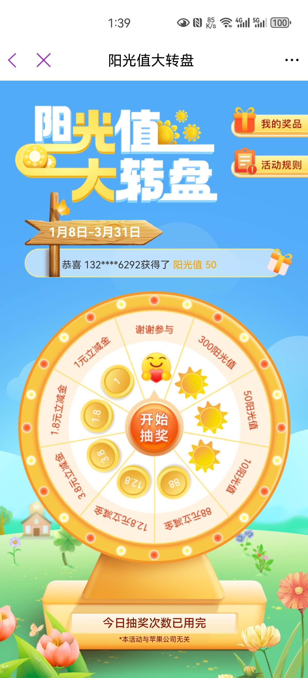 光大阳光值大转盘抽奖