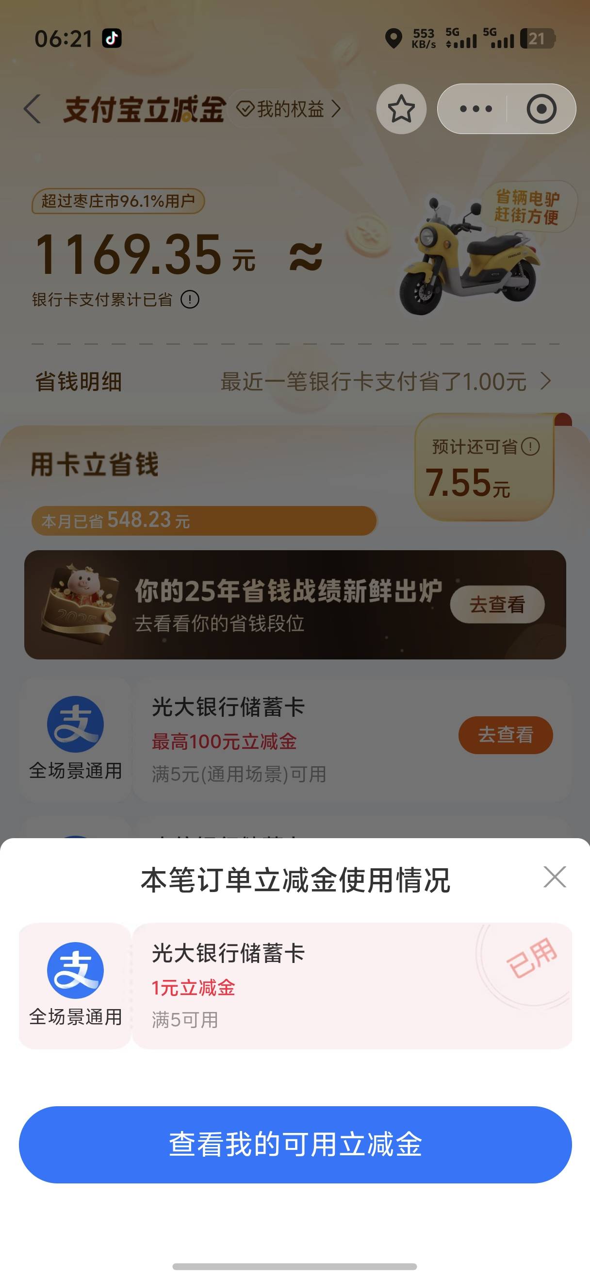 光大银行支付满5元立减1元活动