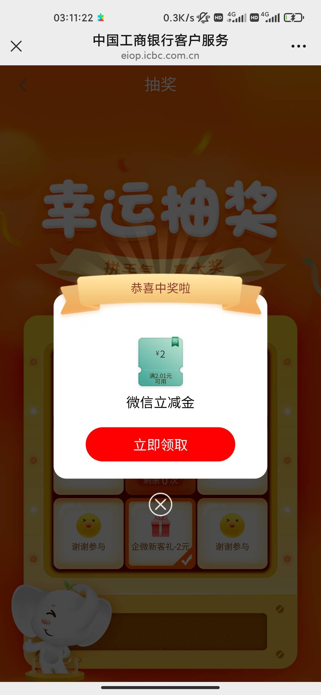 工行福建企微新客礼幸运抽奖活动