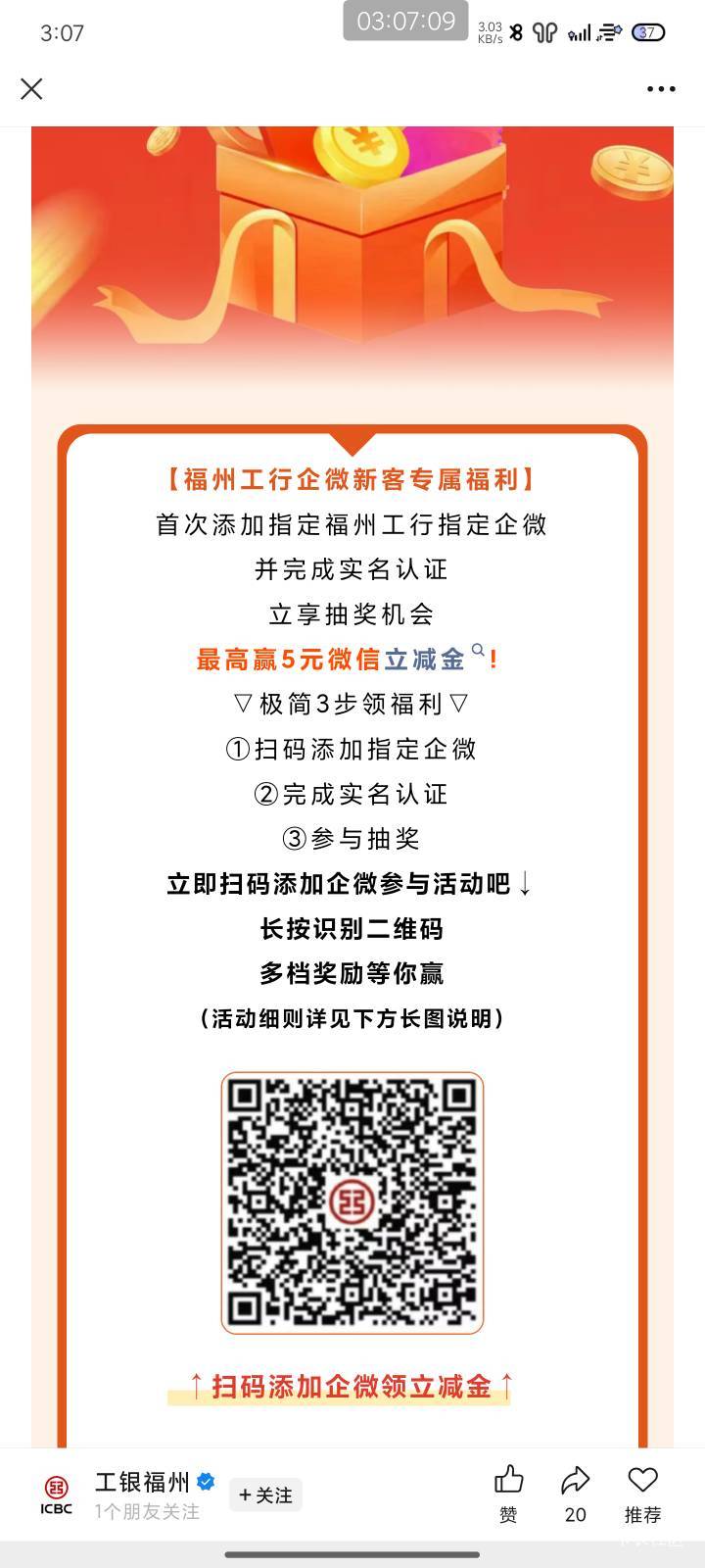 福州工行企微更新了,不过这回不是必得5了