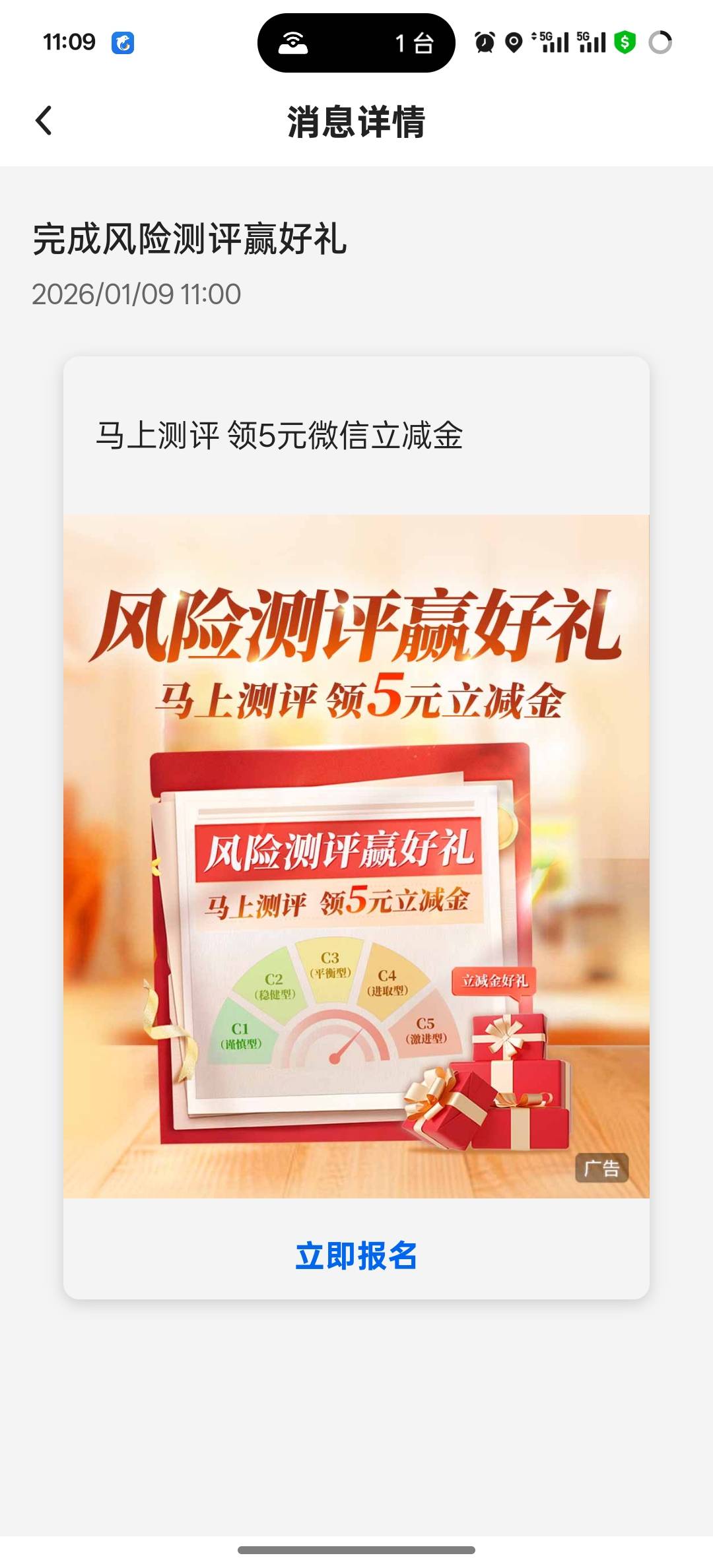 中行测评5毛,入口消息里面