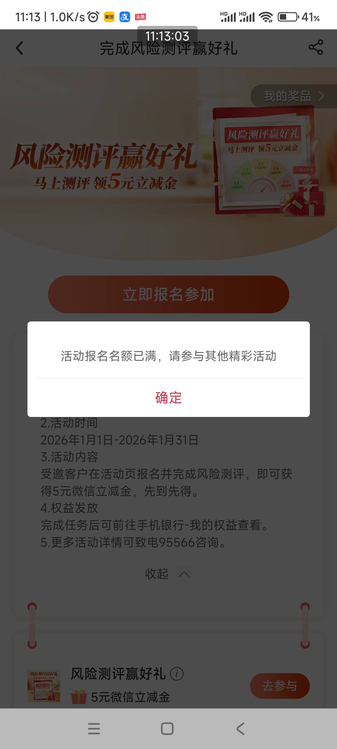 中行风险评测赢好礼5元微信立减金活动