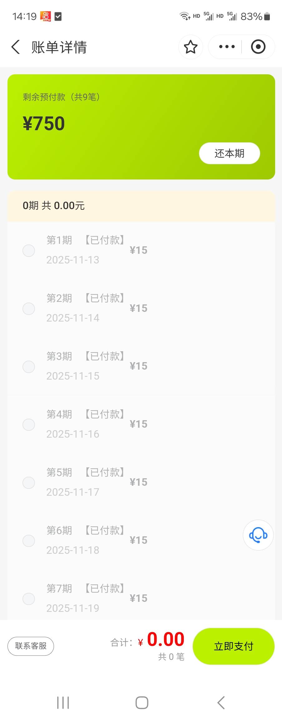 老哥们 谁做过支付宝小额的条子  300  500  日还15的   还了吗?