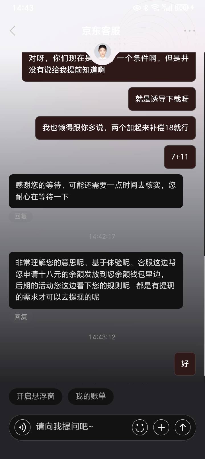 两天靠京东客服快吃了100了
