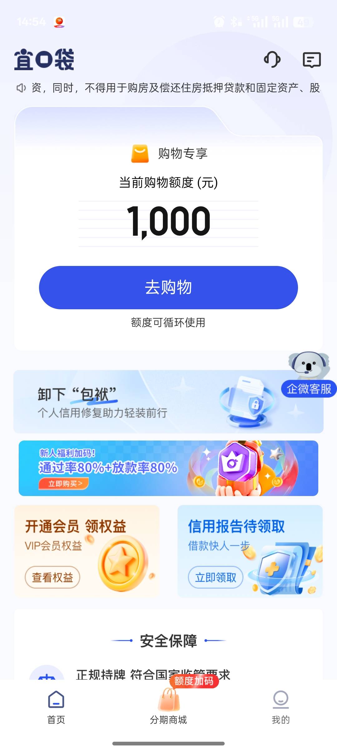 宜口袋有额度不能用!天天发短信!