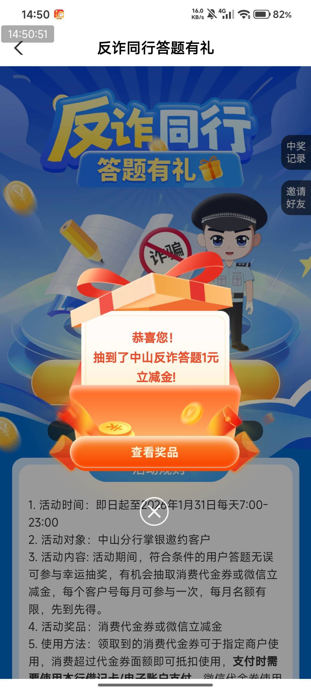 农行中山城市专区反诈同行答题有礼活动