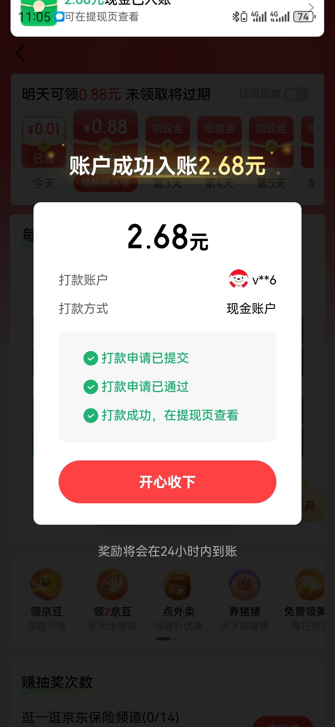 京东金融,签到,任务,更新两个保险,4毛。用料子就行,领完取消。