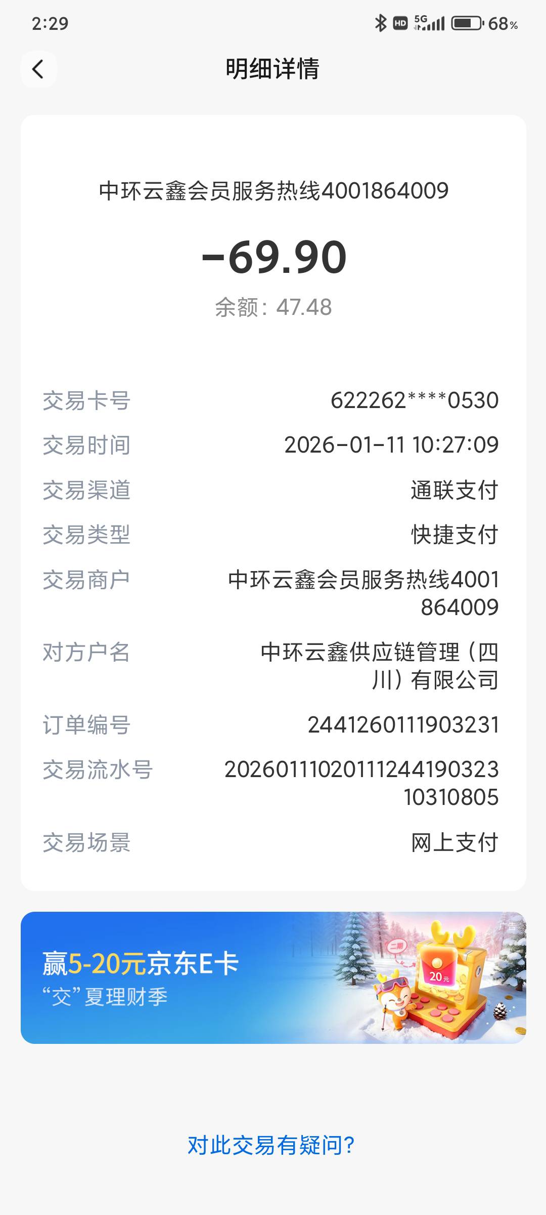 分期乐,我之前也扣了2次,你直接打电话退了就行