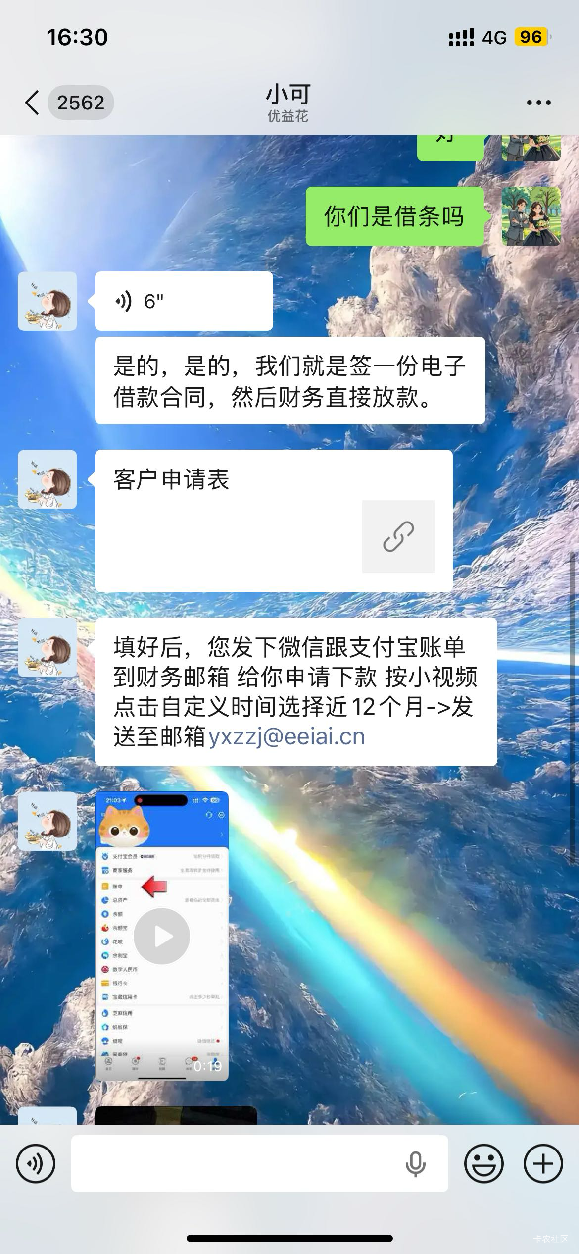 企业微信加我的,问了说是借条,说不一定百分百过,要看支付宝和微信帐单,老哥们说说是真的吗