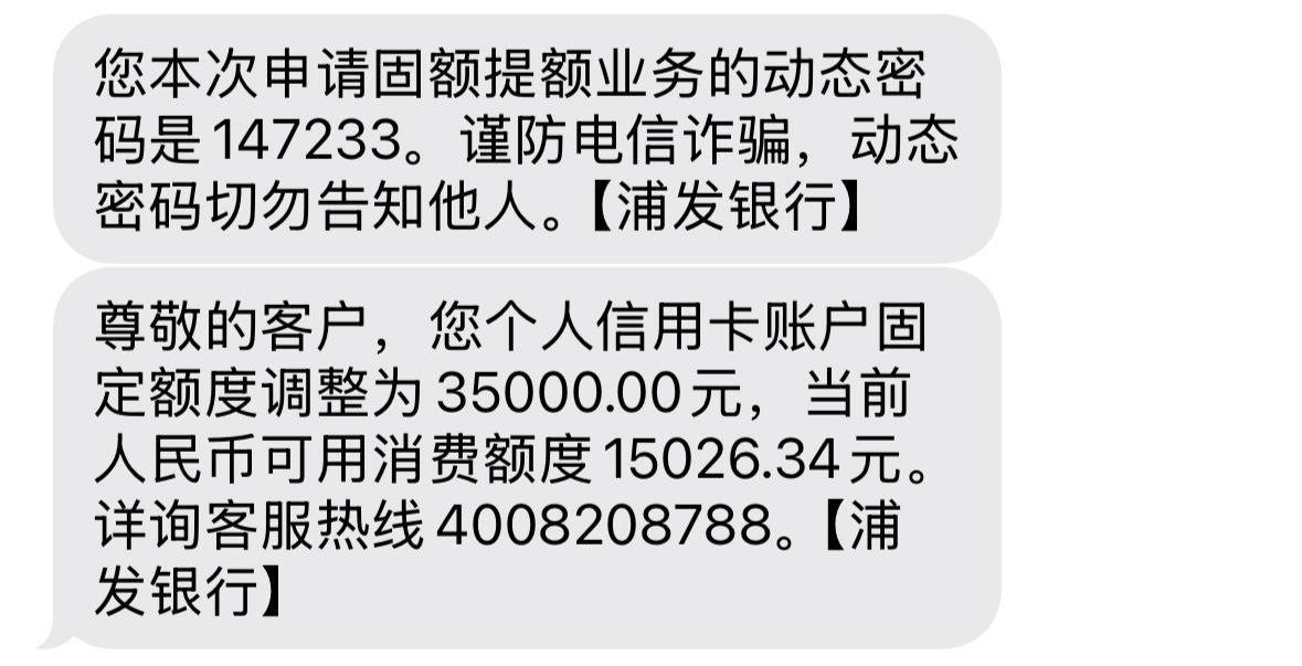 浦发银行本来想销卡的来,刚才一看可以提升额度,直接过了,1年多了距上次提升额度。