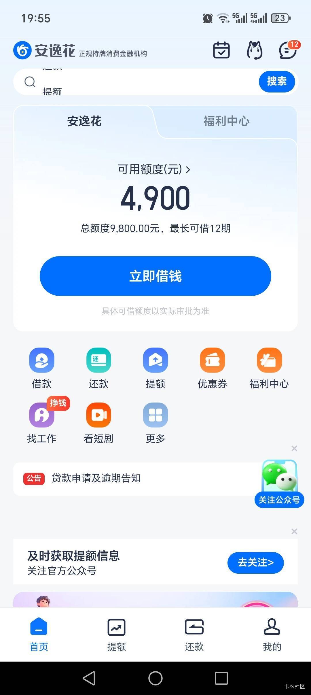 征信修复后安逸花给了9600下款4800,这几年什么都不下,以为行了,特么又点了十来个全