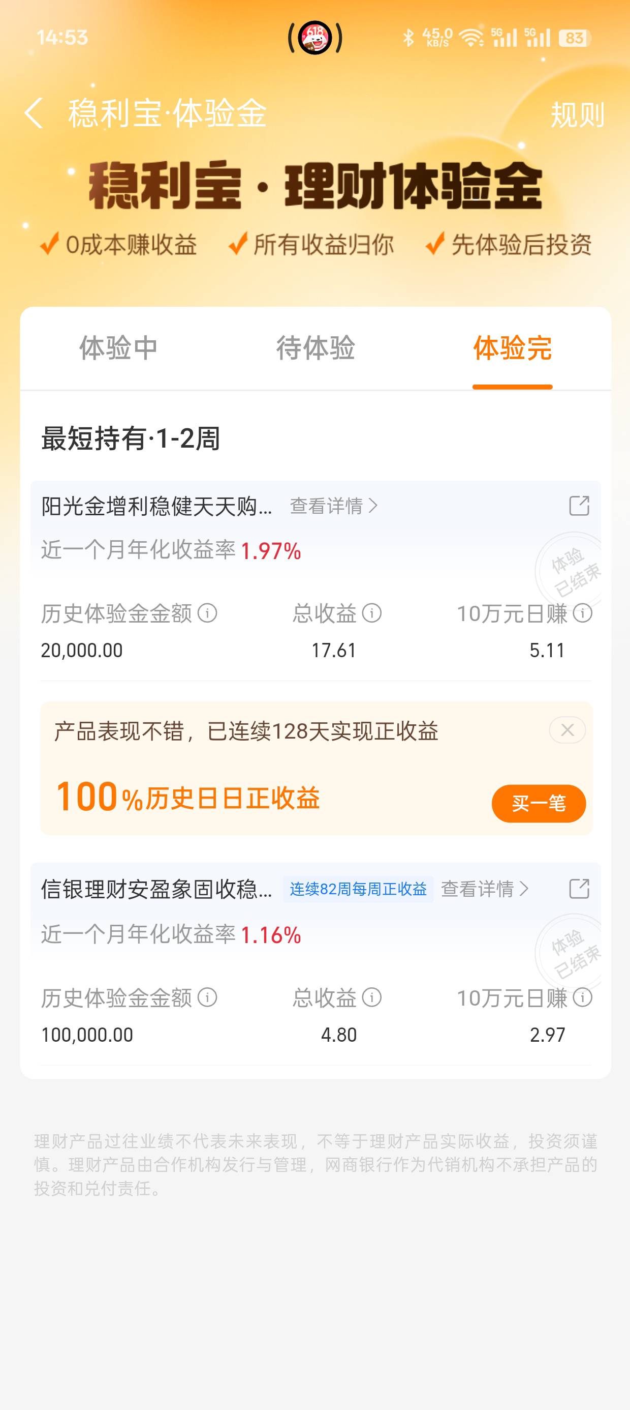 我都不知道支付宝什么时候送我的体验金,居然有接近20毛的收益